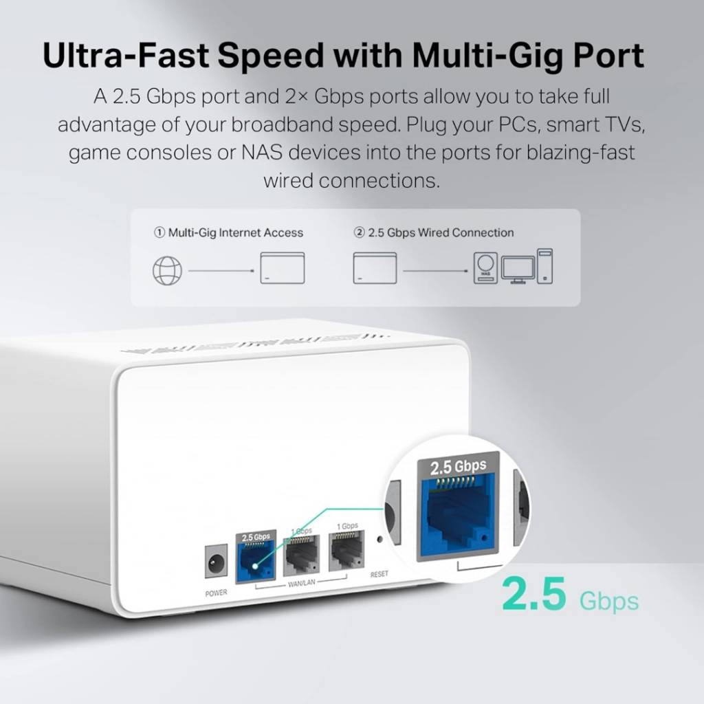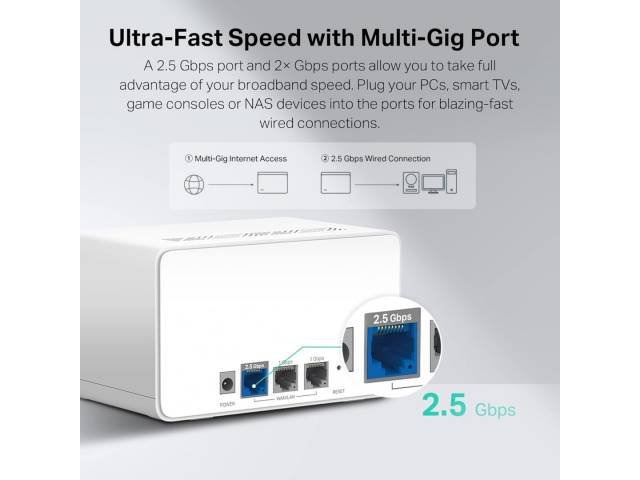 - Puertos Multi-Gig + Gigabit en cada unidad para conexiones cableadas ultrarrápidas