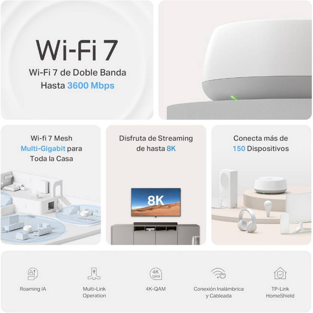 - WiFi 7 de doble banda con velocidad total de hasta 3.6 Gbps