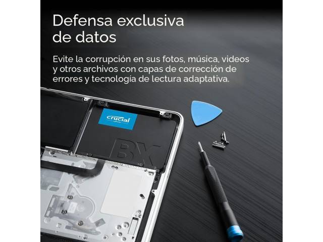 El Crucial BX500 de 240GB es una solución ideal para revitalizar cualquier PC o notebook. Con velocidades de lectura de hasta 540 MB/s y escritura de 500 MB/s, ofrece una mejora inmediata en arranques, tiempos de carga y fluidez general del sistema. Su formato 2.5" SATA III asegura una instalación sencilla y compatibilidad amplia, siendo una opción accesible y confiable para quienes buscan reemplazar un disco mecánico o agregar un SSD rápido y estable.