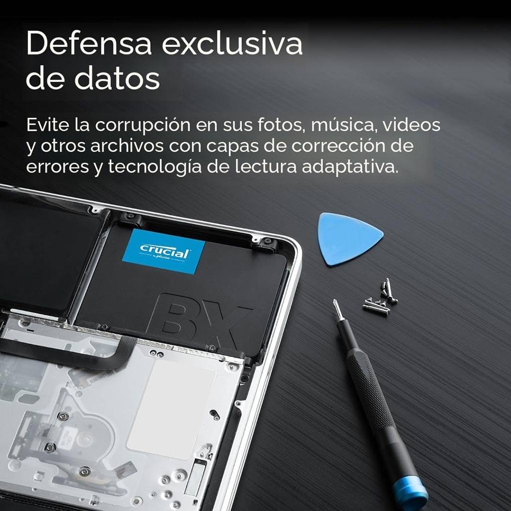 El Crucial BX500 de 500GB es un SSD interno diseñado para mejorar de forma notable la velocidad y la respuesta de tu PC o notebook. Ofrece un rendimiento superior con velocidades de lectura de hasta 550 MB/s y escritura de 500 MB/s, lo que se traduce en arranques más rápidos, carga fluida de aplicaciones y una experiencia general mucho más ágil. Su formato 2.5" SATA III asegura compatibilidad con la mayoría de equipos, siendo una opción confiable y accesible para actualizar tu sistema.