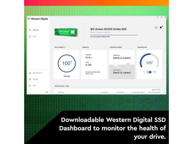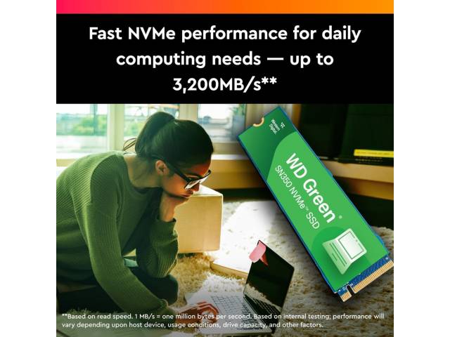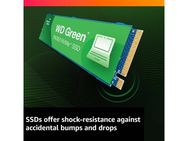 El disco SSD NVMe WD Green SN350 puede revitalizar su antigua computadora para el uso diario. Ya sea que esté en clase, de compras, conversando o navegando en la web, este disco puede trabajar hasta cuatro veces más rápido que los discos SATA. Debido a que los SSD no tienen piezas móviles, ofrecen un diseño resistente a los impactos que permite proteger los datos importantes contra golpes y caídas accidentales. El factor de forma delgado M.2 2280 permite actualizar cualquier computadora que tenga una ranura NVMe de manera rápida y sencilla. Además, el panel de control descargable del SSD de Western Digital le permite supervisar el estado de su disco para brindarle mayor tranquilidad.
