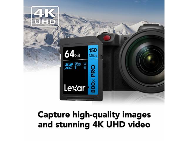 La memoria SDXC Lexar 800x Pro 64 GB Blue Series ofrece un rendimiento confiable para fotografía y video en alta calidad. Gracias a sus velocidades mejoradas, permite capturar imágenes y grabar video en Full HD y 4K sin interrupciones, siendo ideal para cámaras digitales y uso cotidiano.