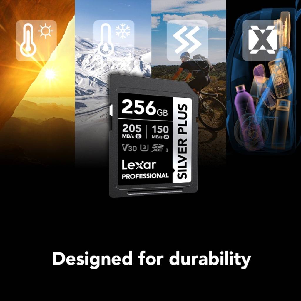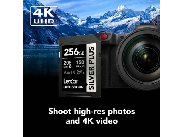 La memoria SDXC Lexar Professional Silver Plus 256 GB es una opción ideal para quienes necesitan gran capacidad y rendimiento confiable en fotografía y video. Gracias a su clasificación U3 y V30, permite grabar contenido en Full HD y 4K con estabilidad, siendo perfecta para cámaras digitales y creadores de contenido exigentes.