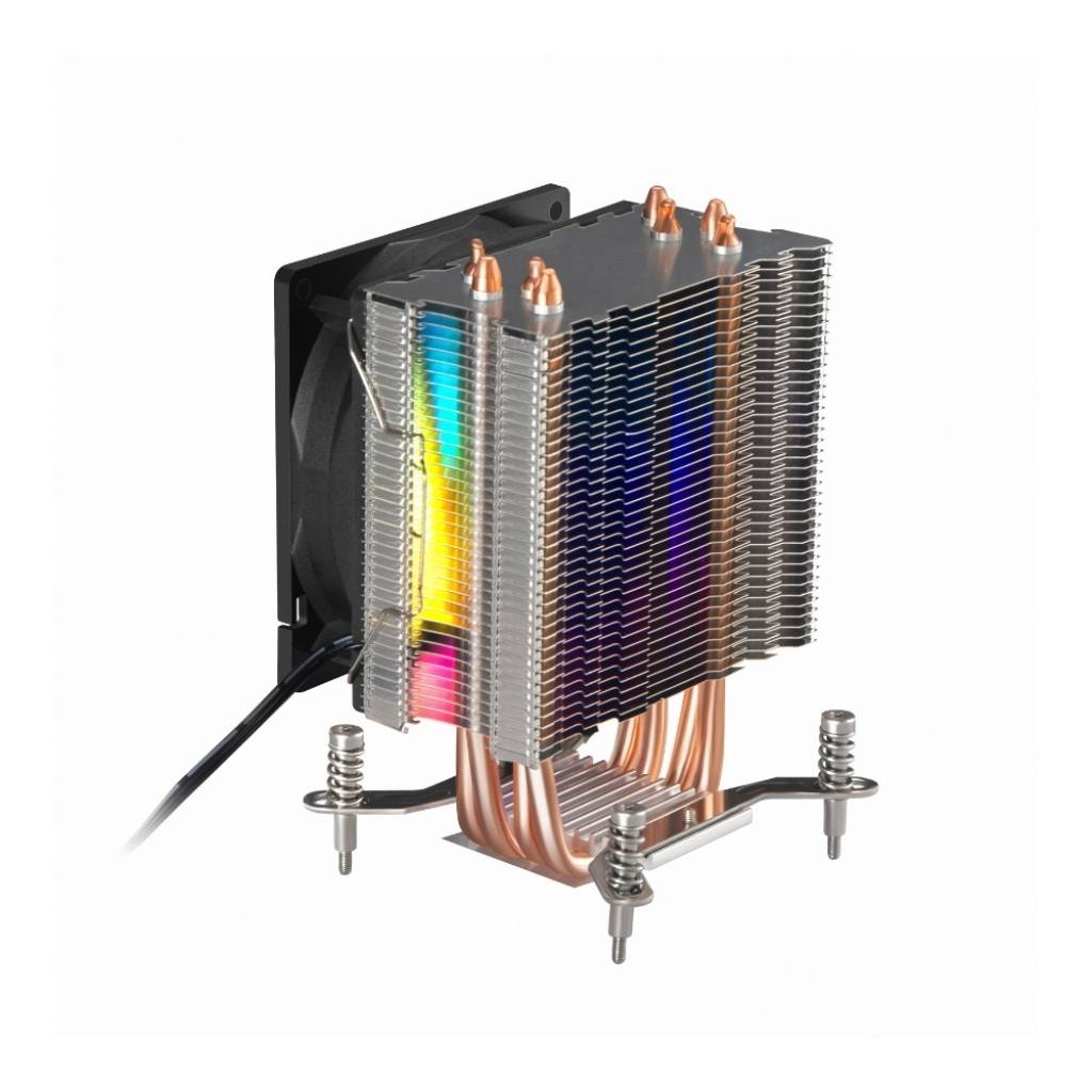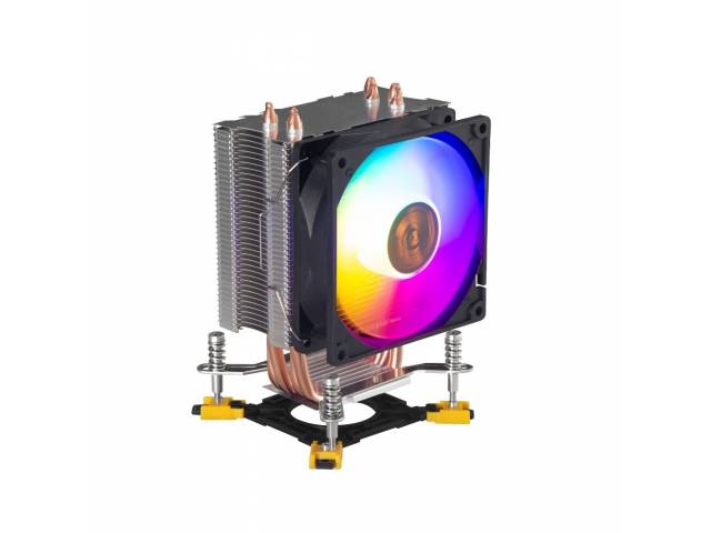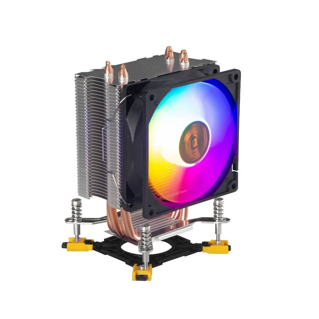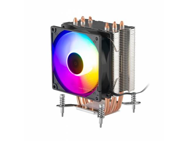 El SHOT-RGB-F101W-CPU es un cooler para CPU de alto rendimiento que combina cuatro heat pipes de alta conductividad con un ventilador compacto de 9 cm para ofrecer una excelente disipación térmica. Con un TDP de 150 W y una velocidad de 1800 rpm, mantiene el procesador en temperaturas óptimas incluso bajo cargas exigentes. Su conector de 3 pines asegura funcionamiento silencioso y estable, mientras que su diseño moderno con iluminación hace que encaje perfectamente en setups gaming.