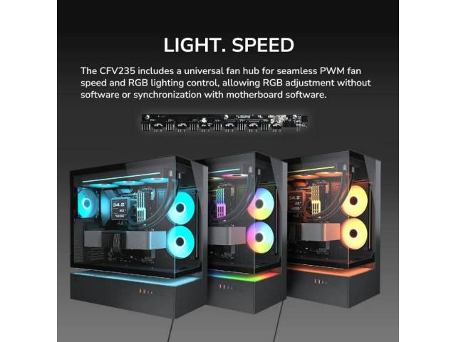 Lateral (M/B): 1 x Unity 240 mm ARGB PWM (reversed)