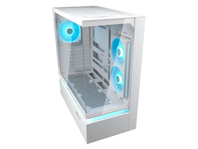 El Cougar CFV235 White es un gabinete Mid Tower con un diseño innovador de ventilación central flotante (CFV), que separa la fuente de alimentación de la cámara principal para optimizar el flujo de aire y mejorar la estética interna. Su estructura abierta permite un armado limpio y una excelente refrigeración dirigida, ideal para configuraciones gamer modernas.