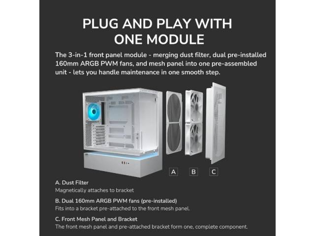 El Cougar CFV235 Mesh White es un gabinete Mid Tower diseñado para ofrecer máximo flujo de aire y una estética moderna con estructura de ventilación flotante. Su innovador diseño separa la fuente de alimentación de la cámara principal, mejorando la circulación de aire y permitiendo un armado limpio, ideal para configuraciones gamer de alto rendimiento.