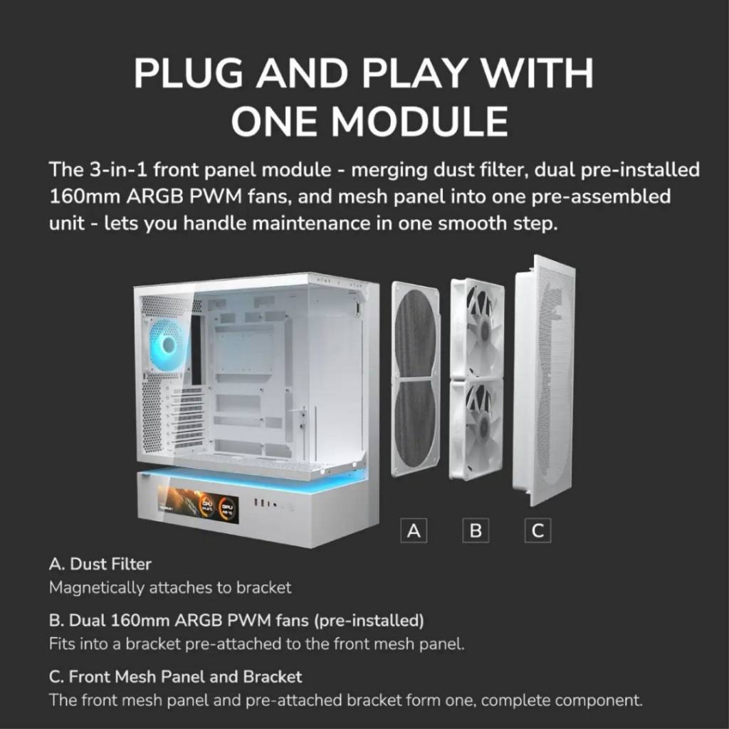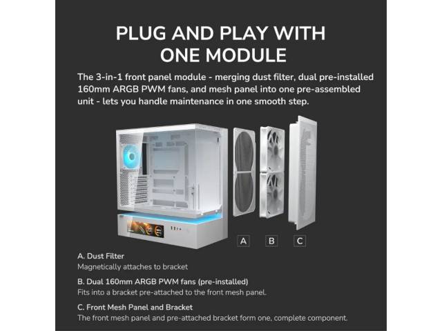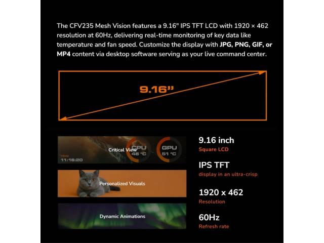El Cougar CFV235 Mesh Vision White es un gabinete Mid Tower diseñado para ofrecer una estética moderna, excelente flujo de aire y una presentación interna muy vistosa. Su estructura permite montar componentes de alto rendimiento con buen espacio interno, panel lateral de vidrio templado y una pantalla integrada en el frente que le da un aspecto diferencial para setups gamer o de exhibición.