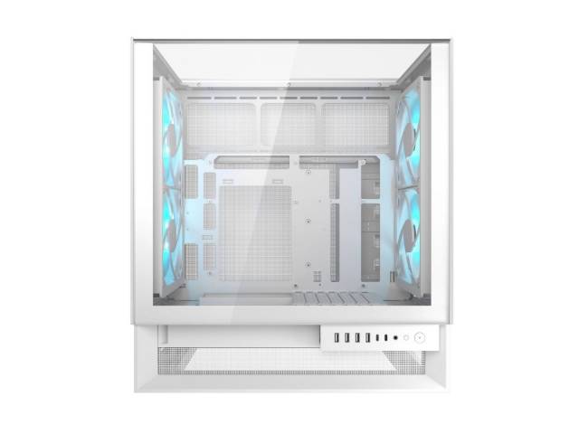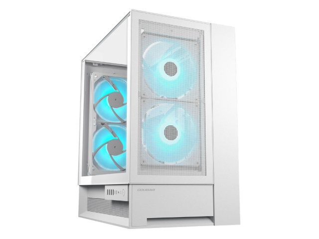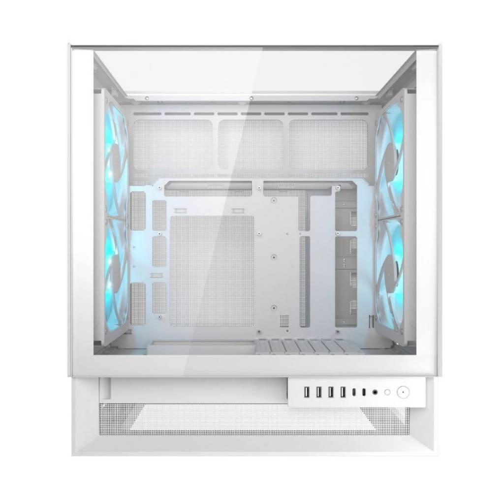 El Cougar OmnyX Blanco es un gabinete mid tower de nueva generación diseñado para ofrecer máximo flujo de aire, estética panorámica y armado ultra limpio. Destaca por su innovador diseño simétrico que permite colocarlo en cualquier posición del escritorio sin afectar el rendimiento térmico, junto con 4 ventiladores ARGB de 160 mm preinstalados, logrando una refrigeración superior desde fábrica.