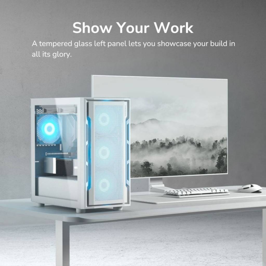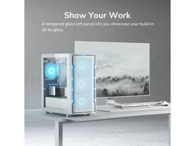 El Cougar Uniface Mini White es un gabinete Mini Tower compacto diseñado para ofrecer buen flujo de aire en un formato reducido. Su panel frontal perforado permite una ventilación eficiente, mientras que su diseño interno optimizado brinda compatibilidad con componentes modernos, siendo ideal para setups gamer o de oficina en espacios más pequeños.