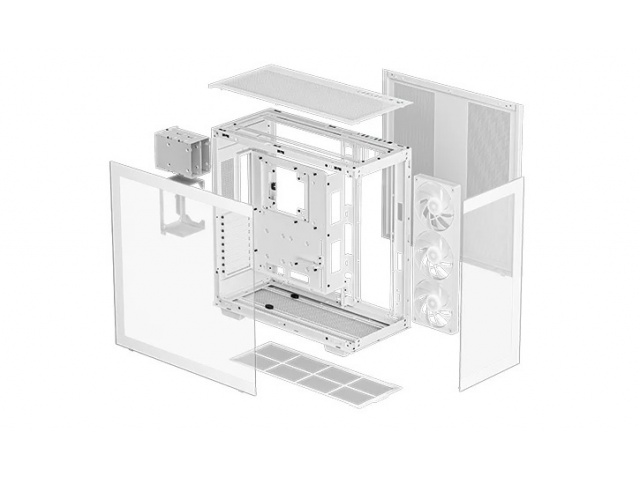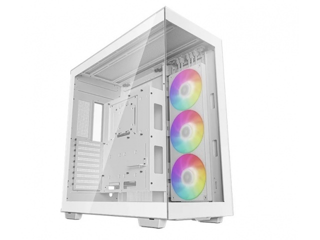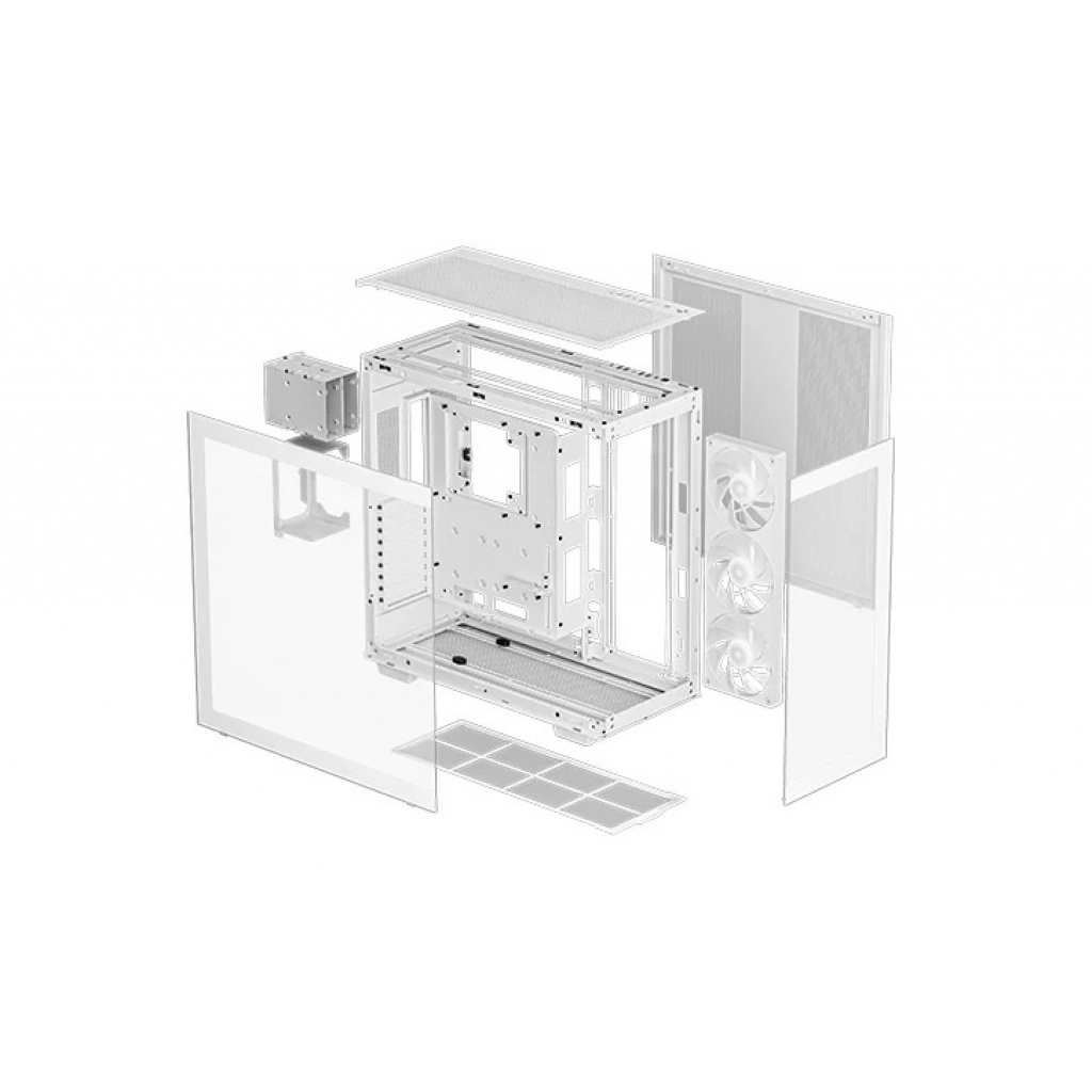 El DeepCool CH780 White ARGB es un gabinete premium de diseño panorámico con doble cámara y vidrio templado, ideal para equipos de alta gama. Su construcción robusta, amplio soporte para hardware y panel frontal con puertos de alta velocidad lo convierten en una opción ideal para builds modernas y exhibiciones con iluminación ARGB.