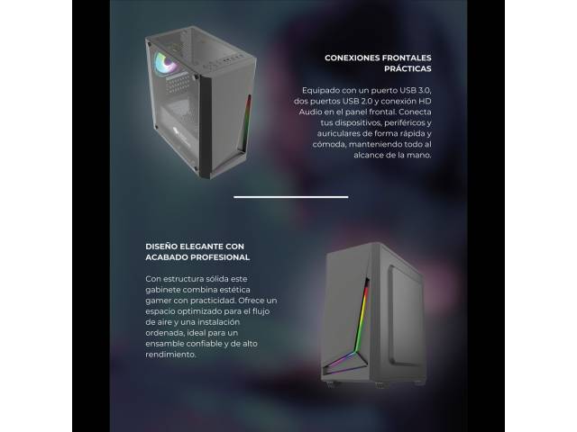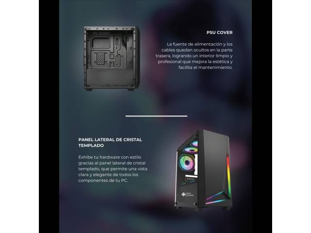 Incluye coolers. PSU Cover. Cristal Templado lateral y frontal. En caja.