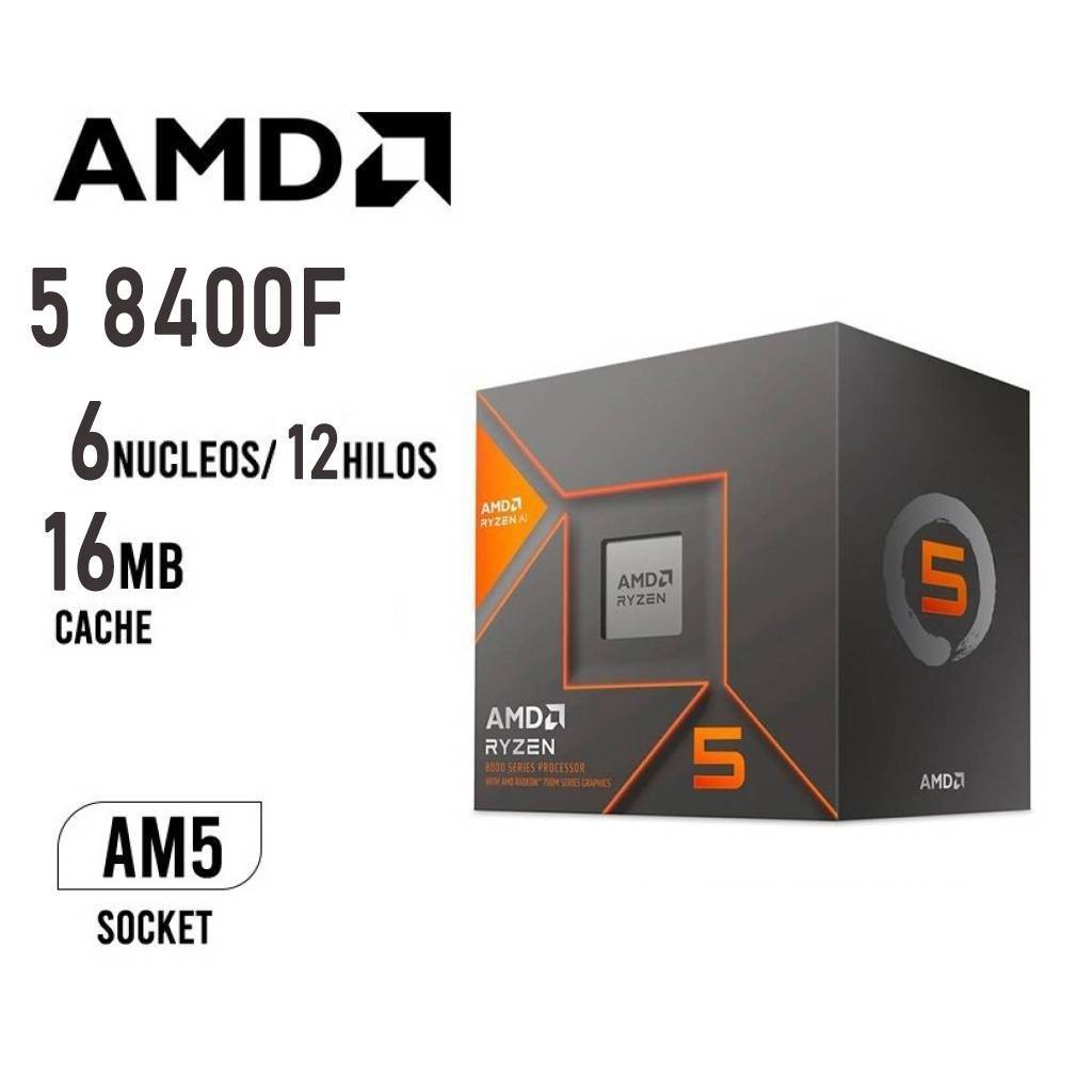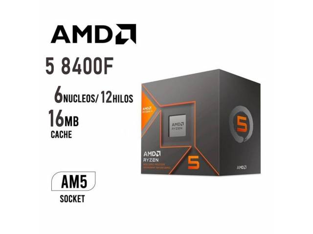 El AMD Ryzen 5 8400F es un procesador de 6 núcleos y 12 hilos diseñado para la plataforma AM5. Ofrece un excelente rendimiento en multitarea y gaming gracias a su arquitectura de 4 nm y velocidades turbo de hasta 4.7 GHz. Al no incluir gráficos integrados, requiere una tarjeta de video dedicada. Viene acompañado del disipador AMD Wraith Stealth Cooler, que asegura una refrigeración eficiente en uso estándar.