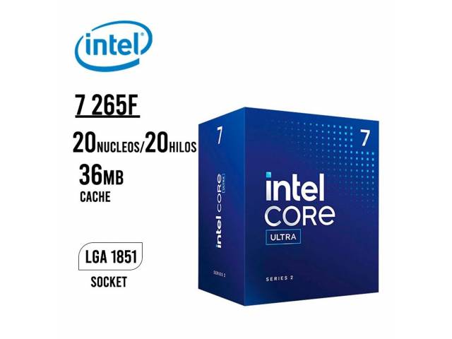 El Intel Core Ultra 7 265F es un procesador de escritorio de alto rendimiento basado en la arquitectura Arrow Lake, diseñado para el socket LGA1851. Ofrece una excelente combinación de potencia y eficiencia gracias a su configuración híbrida de núcleos de rendimiento y eficiencia. Alcanza frecuencias turbo de hasta 5.3 GHz, proporcionando un desempeño sobresaliente en tareas exigentes y juegos. Incluye disipador PCG 2022C, lo que lo convierte en una opción lista para instalar sin necesidad de refrigeración adicional.