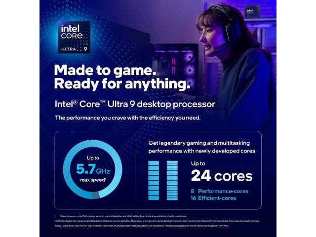 El Intel Core Ultra 9 285K es un procesador de alto rendimiento para equipos de escritorio, perteneciente a la familia Arrow Lake y diseñado para el socket LGA1851. Cuenta con una arquitectura híbrida de 8 núcleos de alto rendimiento (P-cores) y 16 núcleos de eficiencia (E-cores), ofreciendo un total de 24 hilos. Su frecuencia base es de 3.7 GHz en los P-cores y 3.2 GHz en los E-cores, alcanzando frecuencias turbo de hasta 5.7 GHz en los P-cores y 4.6 GHz en los E-cores. Incorpora gráficos integrados Intel Xe y no incluye disipador, por lo que es necesario adquirir uno por separado para su instalación.