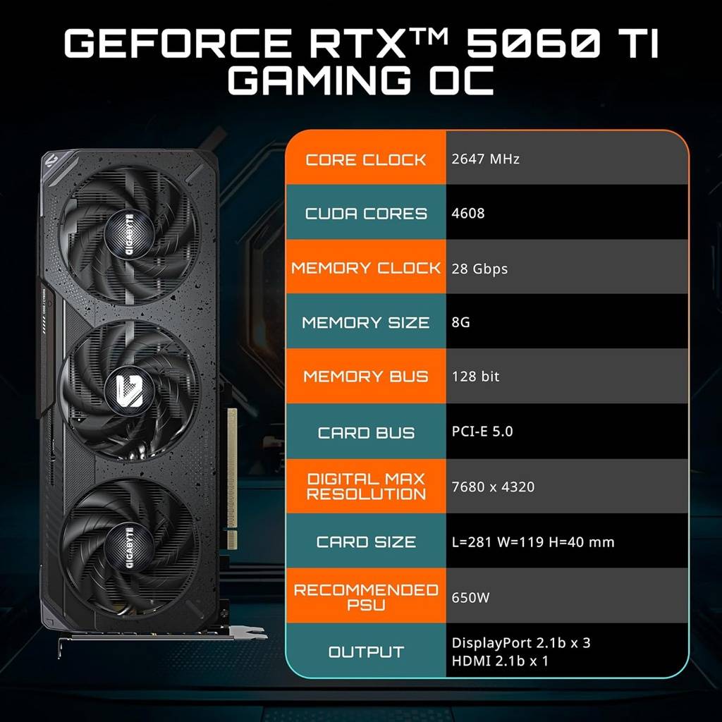 La GeForce RTX 5060 Ti GAMING OC 8G es una tarjeta gráfica pensada para jugadores que buscan alto rendimiento y estabilidad en sesiones exigentes. Con un sistema de refrigeración optimizado y frecuencias elevadas de fábrica, ofrece una experiencia fluida en juegos modernos y tareas multimedia, aprovechando la nueva generación de memoria GDDR7 y tecnologías avanzadas de NVIDIA.