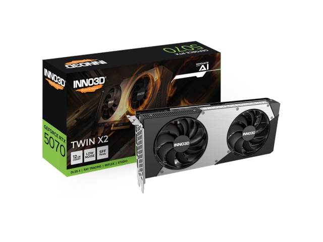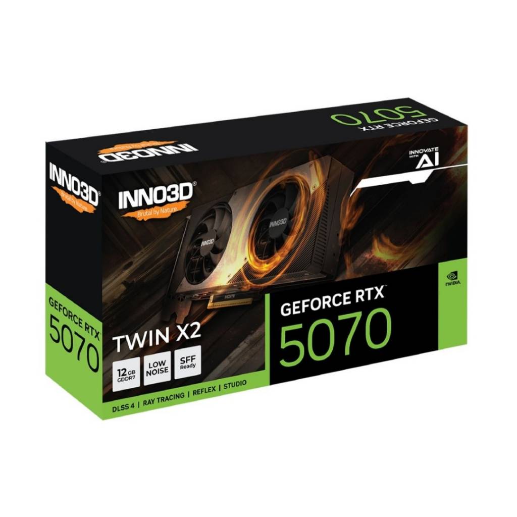 La Inno3D RTX 5070 Twin X2 12GB GDDR7 es una tarjeta gráfica de alto rendimiento basada en la arquitectura NVIDIA Blackwell, diseñada para gaming exigente y creación de contenido. Ofrece una excelente combinación de potencia, eficiencia y tecnologías avanzadas como DLSS 4 y ray tracing, ideal para jugar en QHD ultra y 4K con gran fluidez.