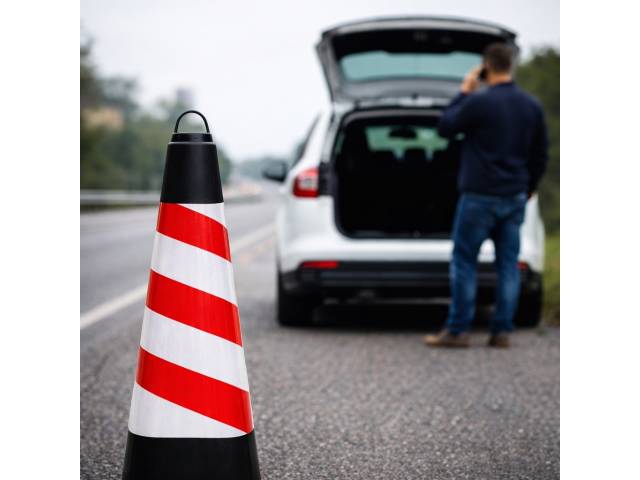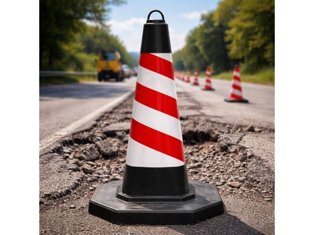 El cono de carretera de 70 cm con base negra es una opción robusta y visible para señalización en espacios urbanos y obras. Fabricado en PVC resistente, cuenta con una banda reflectante de gran tamaño y base reforzada que brinda excelente estabilidad, ideal para delimitar áreas y mejorar la seguridad.