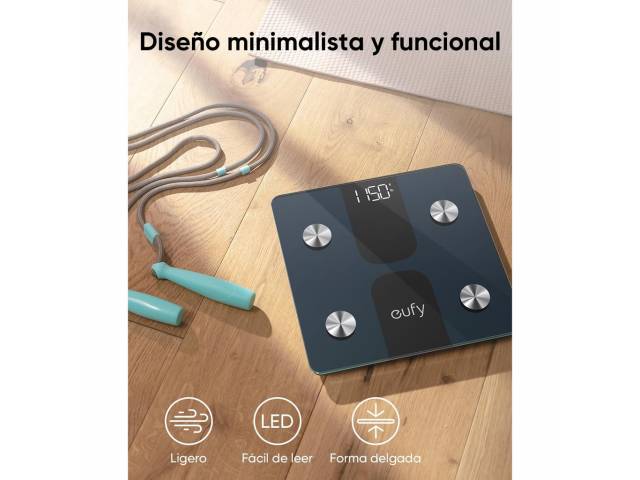 Con Bluetooth, pantalla LED grande, análisis de peso, grasa corporal, IMC y composición corporal, encendido y apagado automáticos, puesta a cero automática, superficie de vidrio templado y unidades lb/kg.