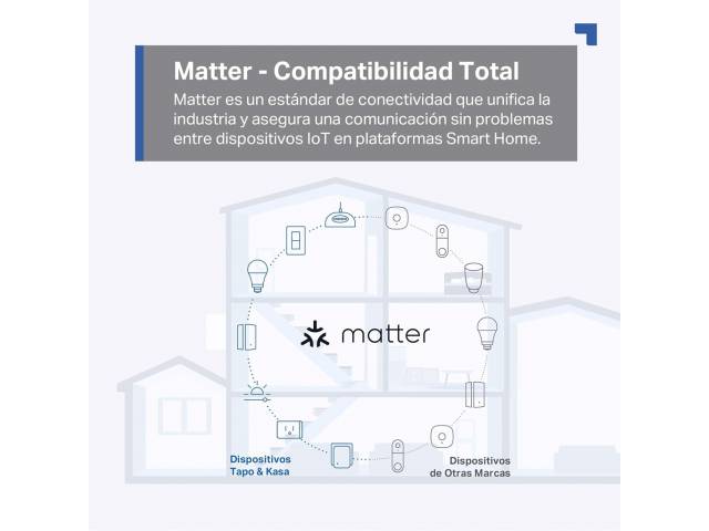 - Compatibile con Matter. Integra los dispositivos Tapo certificados por Matter con otros productos Matter en tu ecosistema preferido.