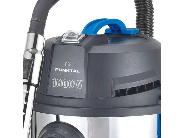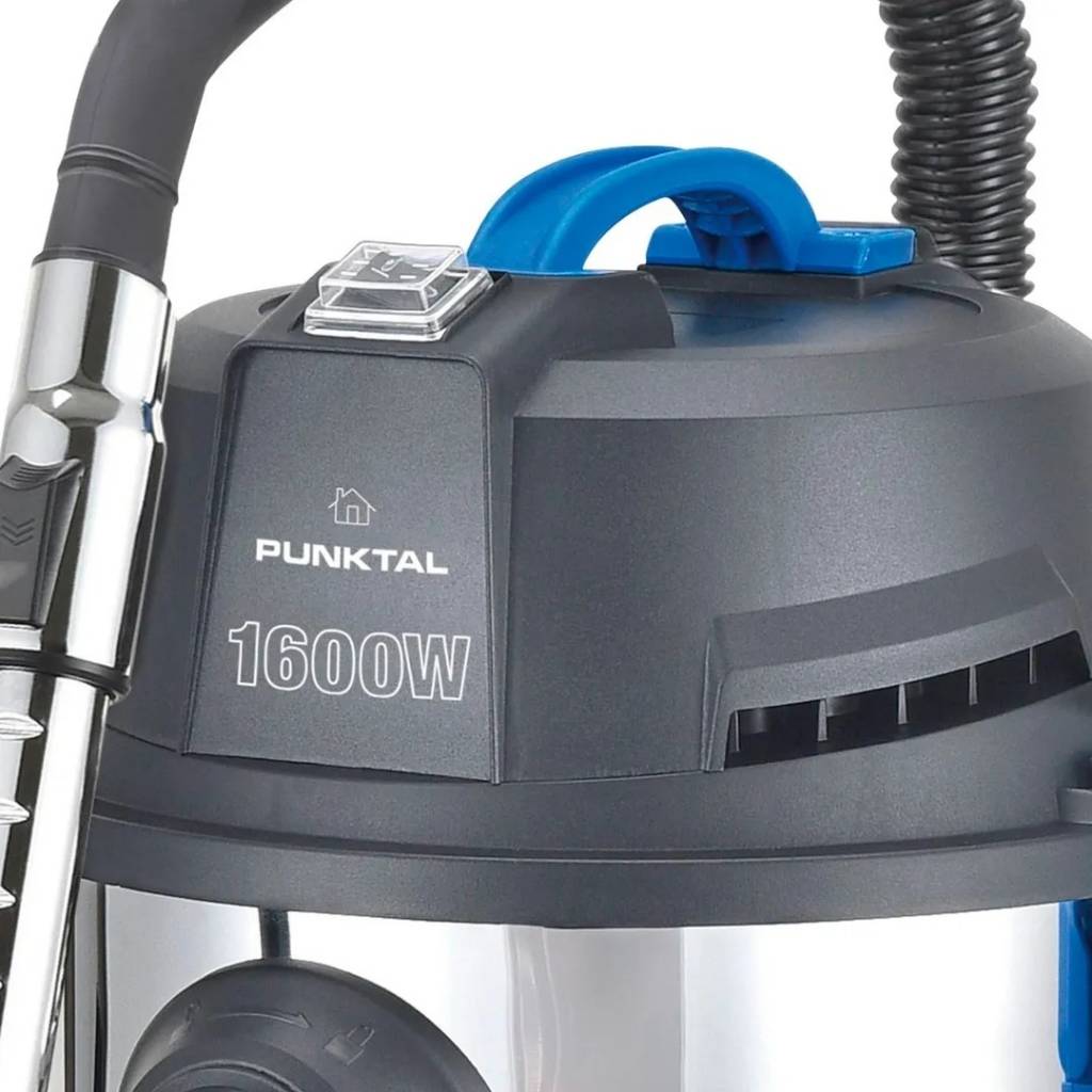 Aspiradora industrial de 1600 W con tanque de 20 litros para limpieza de polvo y agua, ideal para trabajos exigentes en hogares, talleres o comercios. Incluye termostato y válvula de seguridad, filtro de tela y esponja, tubo de acero inoxidable, función de soplado y accesorios múltiples para distintas superficies.
