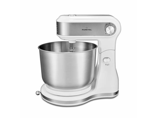 Batidora de pie con bowl giratorio de 3,5 litros y motor de 300 W, ideal para mezclar, batir y amasar de forma práctica. Ofrece 6 niveles de velocidad más función Pulse, bowl desmontable y juego de varillas intercambiables para diversas preparaciones.