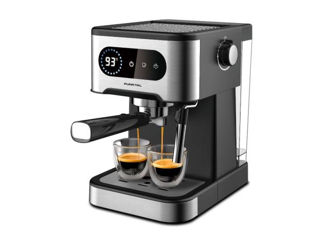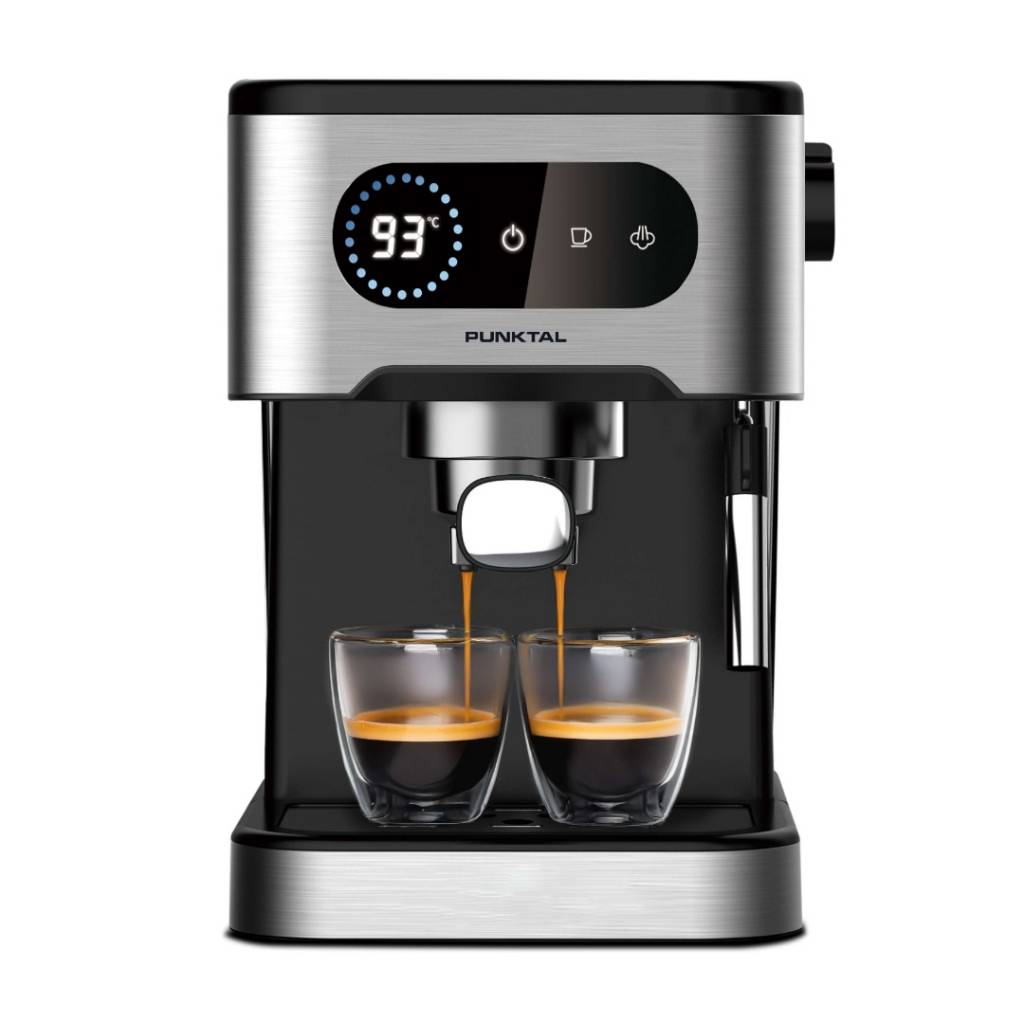 Cafetera digital de doble función para café expresso y cápsulas, con potente bomba de 20 bares y diseño moderno en acero. Ofrece 1350 W de potencia, panel digital para un manejo preciso, vaporizador espumador y filtro doble de acero inoxidable, ideal para disfrutar distintas preparaciones con calidad profesional en casa.