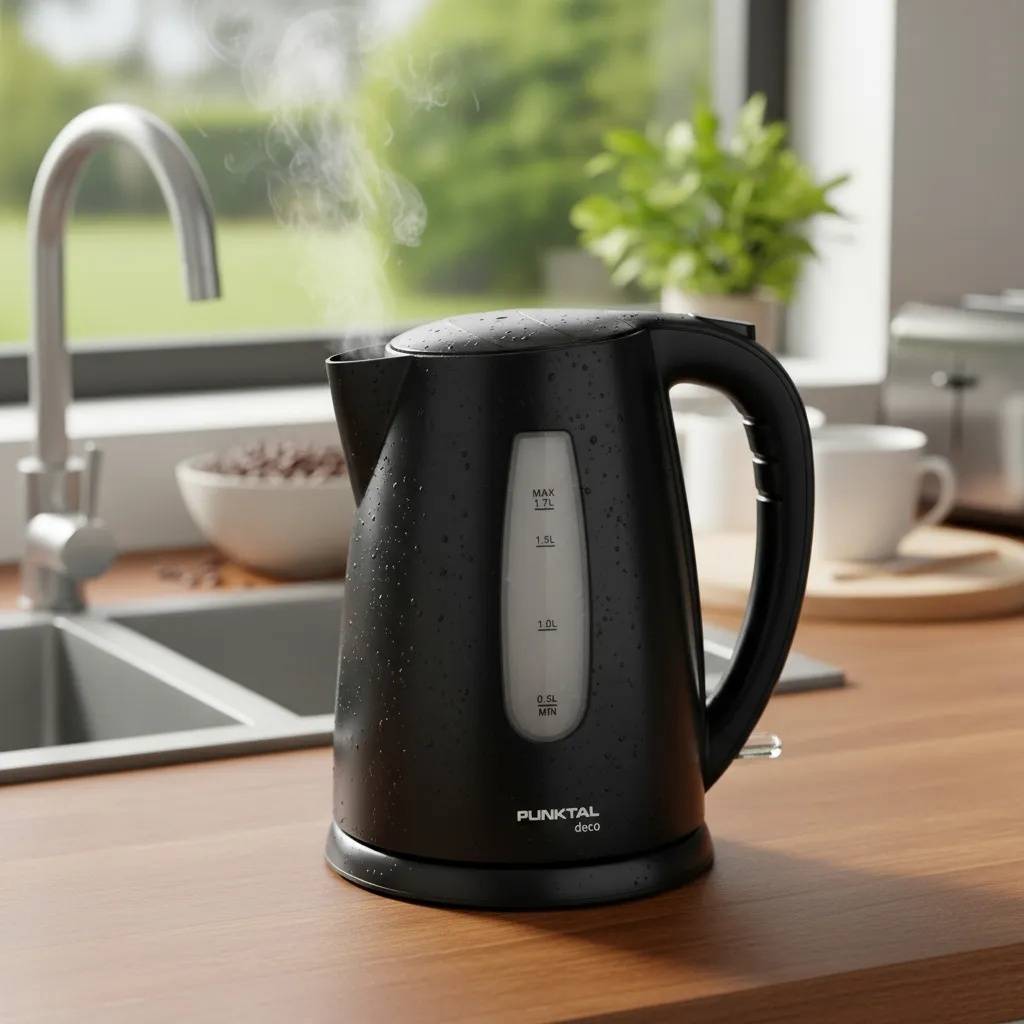 Jarra eléctrica de 2200 W con capacidad de 1,7 litros, ideal para hervir agua de manera rápida y práctica. Incorpora visor de nivel de agua, base con rotación 360°, filtro desmontable en la boquilla, luz indicadora de encendido y botón de apertura de tapa en el asa para mayor comodidad.