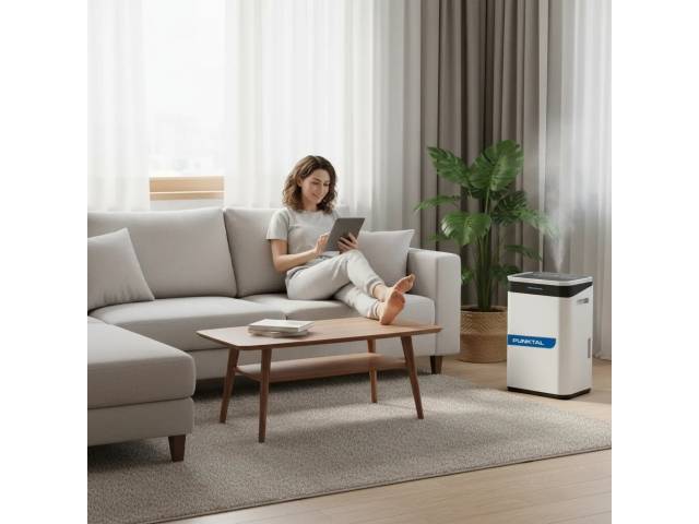 Deshumidificador de alto rendimiento con capacidad de extracción de hasta 20 litros por día, ideal para ambientes grandes o con alta humedad. Cuenta con panel touch con display LED, ionizador, modos automático y secado continuo, además de filtro antibacteriano y bloqueo para niños para un funcionamiento seguro y eficiente.