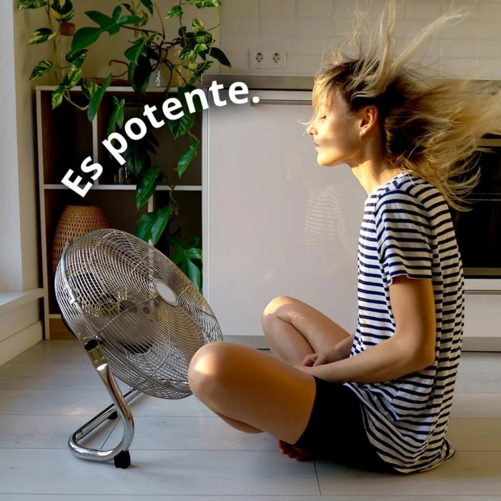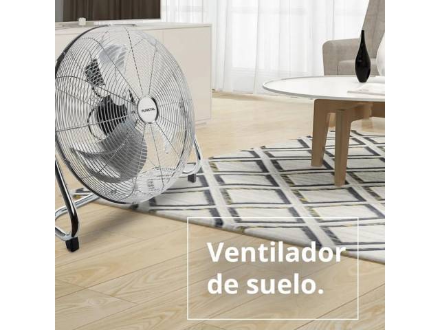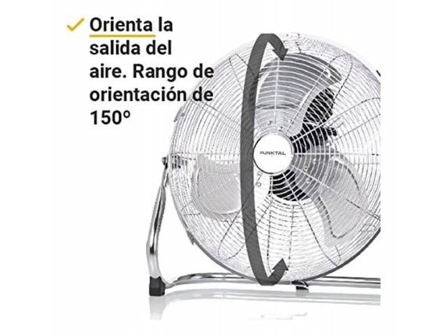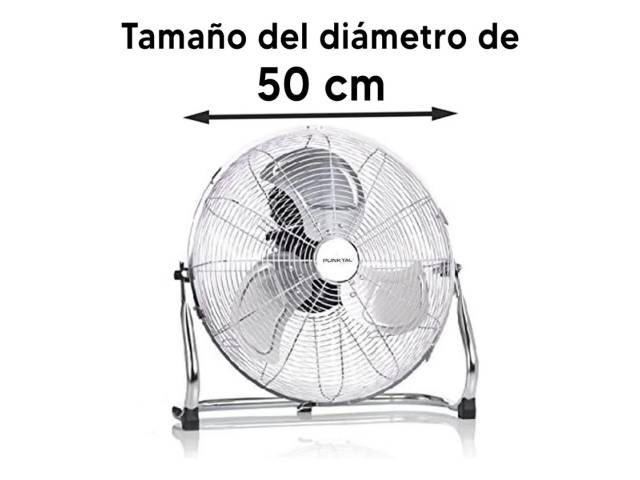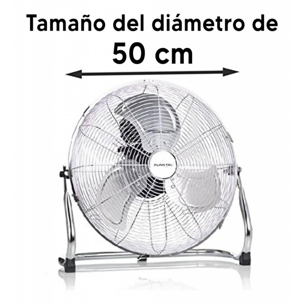 Ventilador turbo con diámetro de 50 cm y diseño en acero inoxidable, ideal para generar un flujo de aire potente y amplio. Cuenta con 3 velocidades, inclinación ajustable y rejilla metálica de protección, ofreciendo un funcionamiento eficiente y duradero.