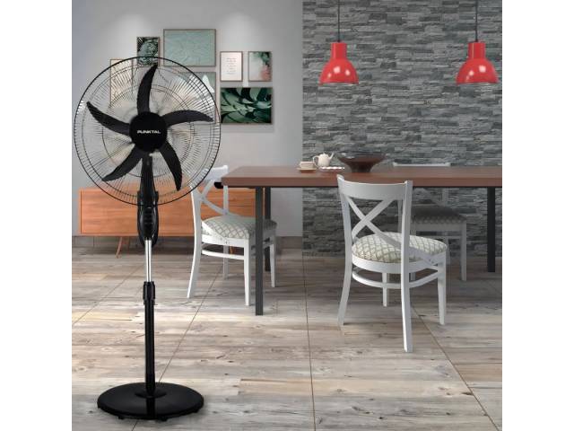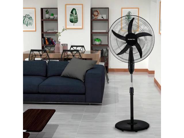 Ventilador de pie con diámetro de 50 cm y altura regulable hasta 1,70 metros, ideal para refrescar ambientes amplios. Cuenta con 3 velocidades, 5 aspas, inclinación ajustable, función oscilante y rejilla metálica de protección para un uso seguro y eficiente.