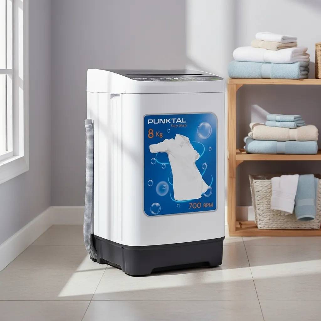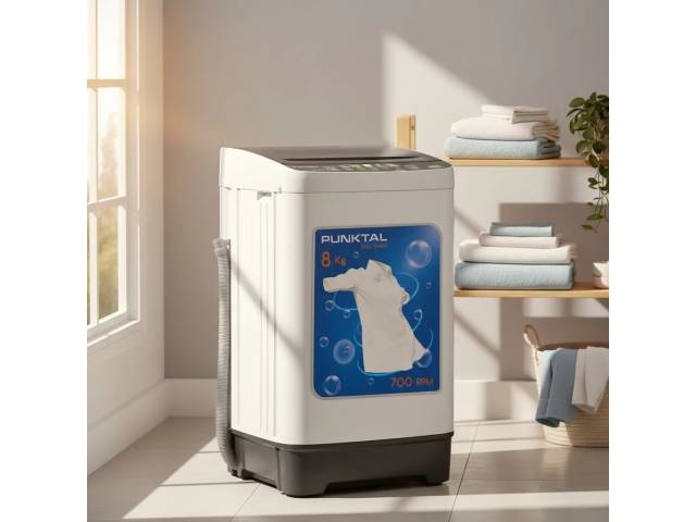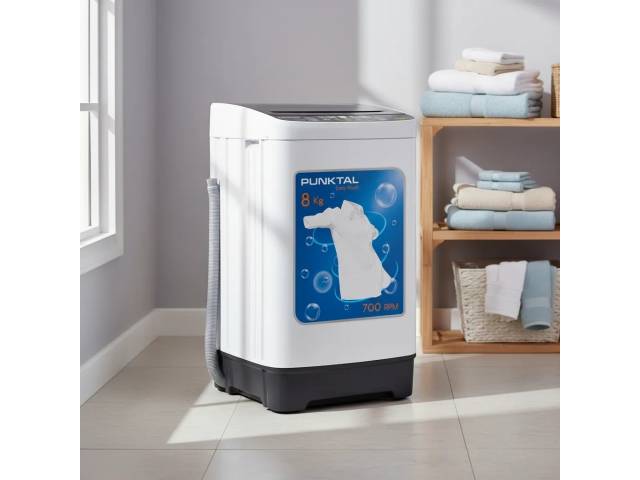 Lavadora de carga superior con capacidad de 8 kg, centrifugado de 700 RPM y 10 programas de lavado. Incluye display LED, bomba de desagüe y tanque de acero inoxidable, ofreciendo un rendimiento eficiente y mayor capacidad para el uso familiar.
