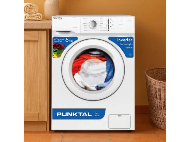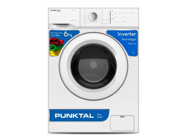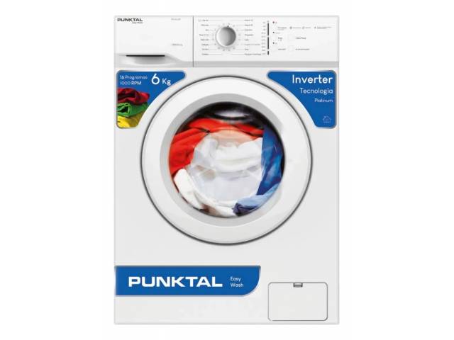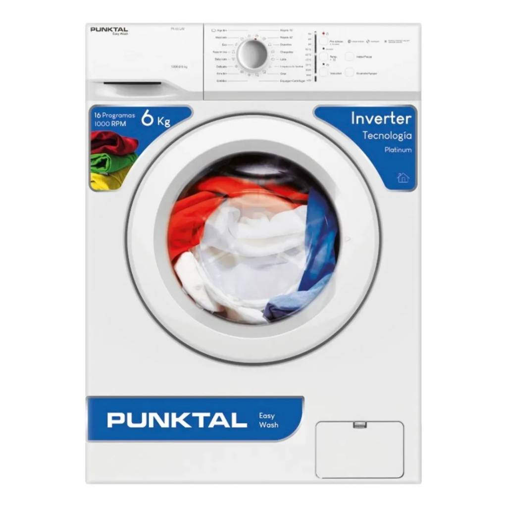 Lavarropas de carga frontal con tecnología Inverter, capacidad de 6 kg y centrifugado de 1000 RPM. Ofrece 16 programas de lavado, tambor de acero inoxidable, temperatura variable e indicador de ciclo, garantizando eficiencia, bajo consumo y excelente rendimiento.