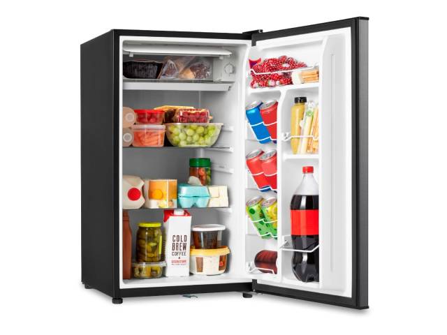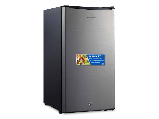 Frigobar compacto con capacidad de 93 litros, ideal para oficinas, dormitorios o espacios reducidos. Cuenta con congelador interno, puerta reversible con llave y cerradura, control de temperatura manual y patas niveladoras para una instalación estable.