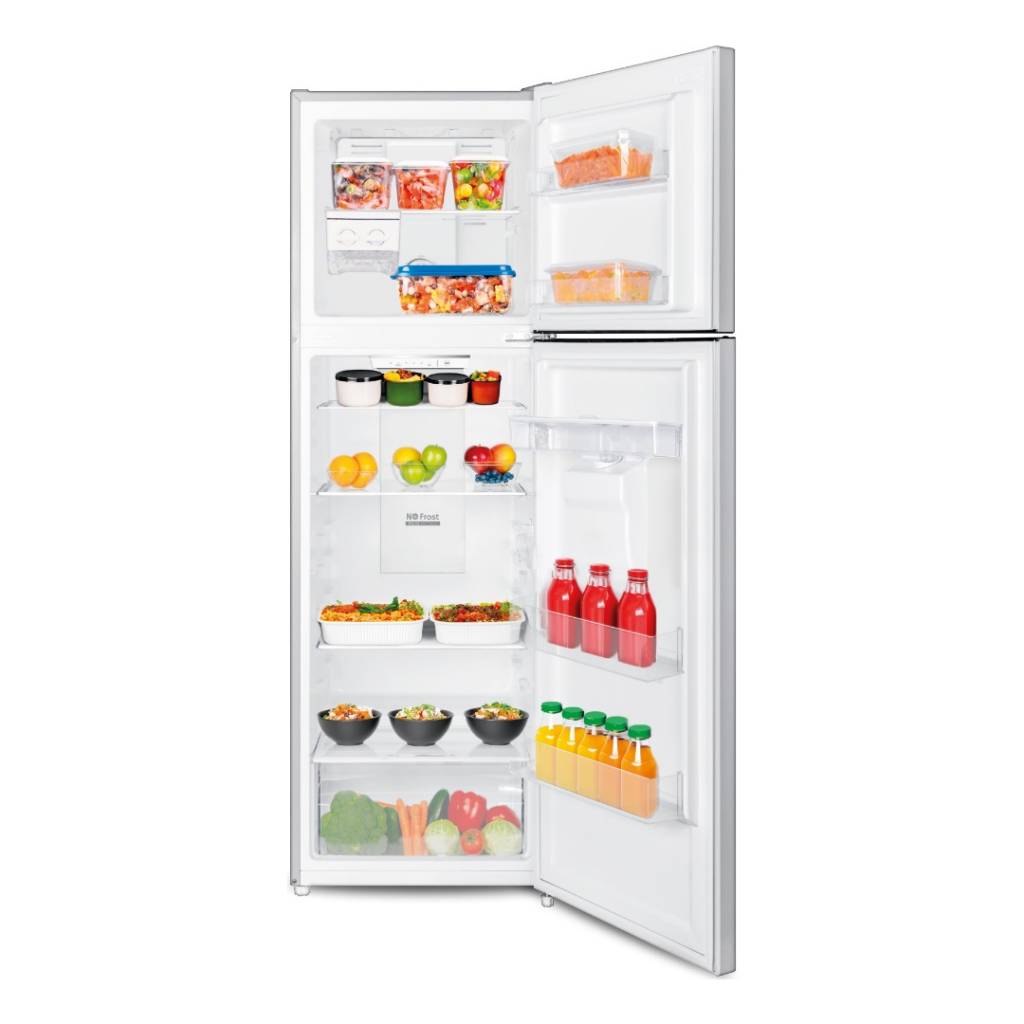 Refrigerador de frío seco con capacidad total de 248 litros y terminación en acero inoxidable, ideal para quienes buscan mayor durabilidad y diseño moderno. Incorpora dispenser de agua y sistema Twist Ice Maker, freezer superior de 53 litros y control de temperatura electrónico para un funcionamiento preciso.