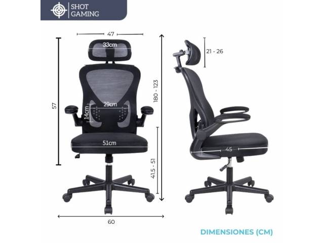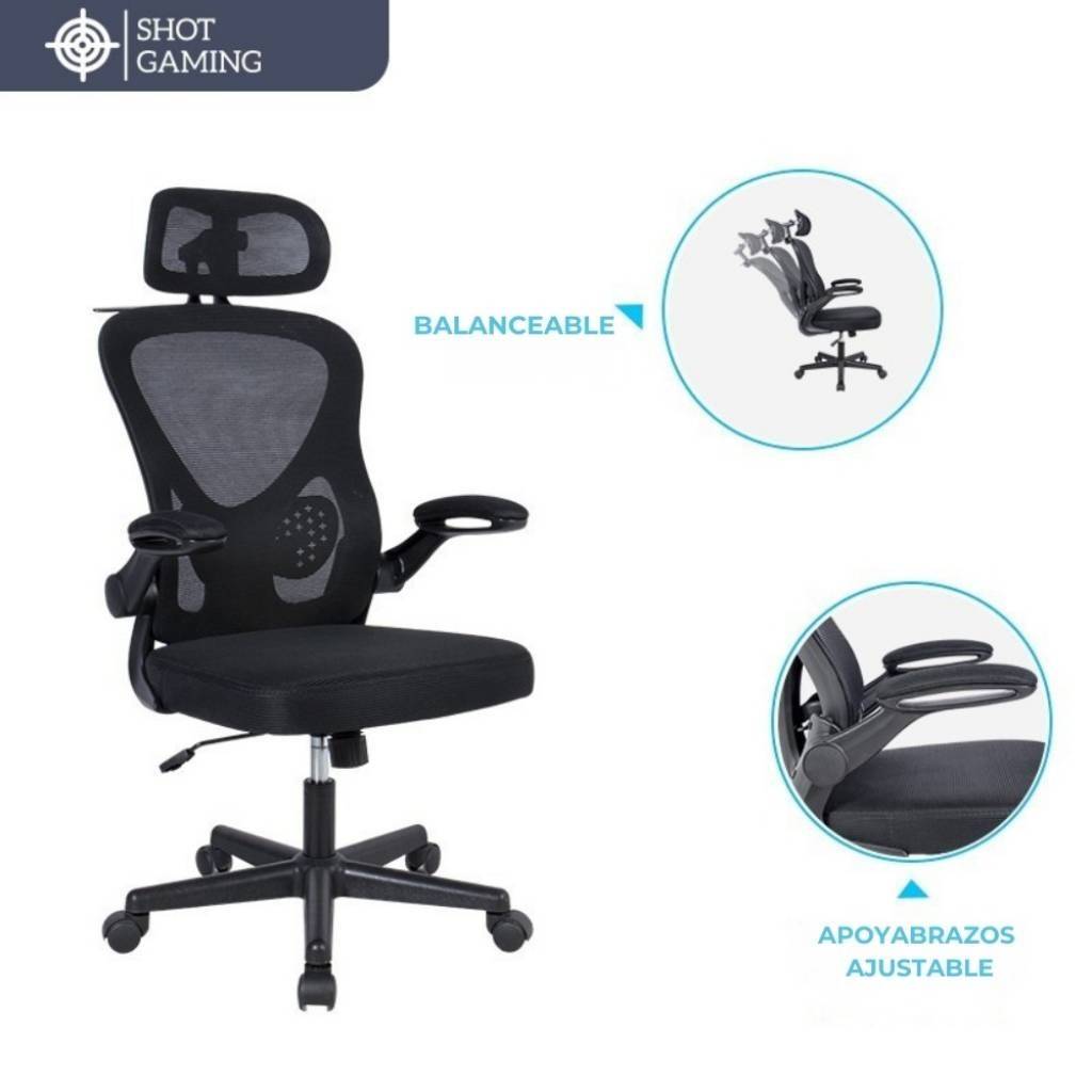 La Shot Gaming SHOT-CHAIR-E100 es una silla de oficina ergonómica diseñada para brindar comodidad y ventilación durante largas jornadas de trabajo. Su respaldo en malla transpirable permite una mejor circulación del aire, mientras que su estructura reforzada y asiento con espuma de alta densidad aseguran soporte y durabilidad. Ideal para home office o uso profesional.