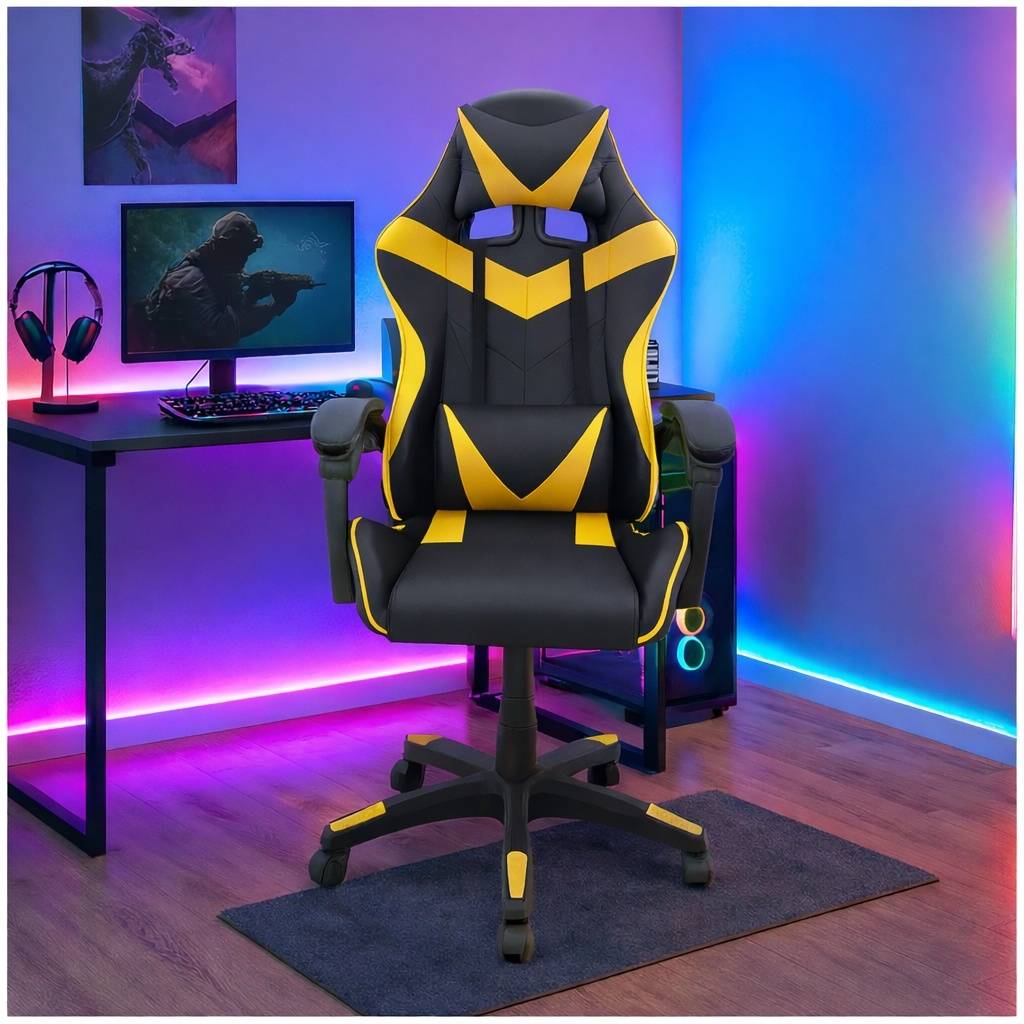 Silla gamer ergonómica diseñada para brindar comodidad en sesiones prolongadas. Combina un diseño deportivo con materiales resistentes y una estructura pensada para mejorar la postura gracias a su apoyo cervical y lumbar con función de masaje USB. Su tapizado en cuero sintético y sus regulaciones la convierten en una excelente opción para trabajo, estudio o gaming intenso.