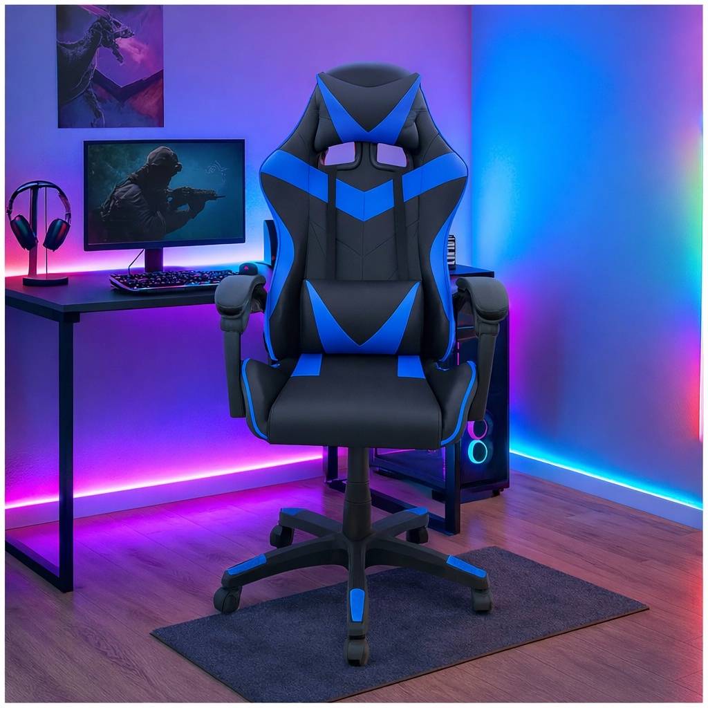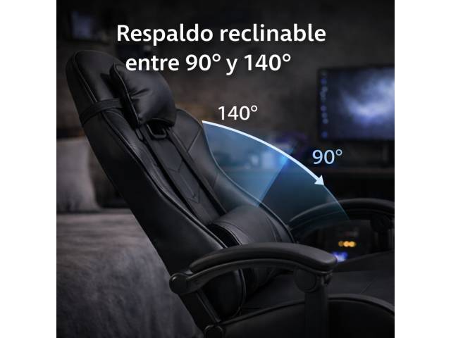 Silla gamer ergonómica diseñada para brindar comodidad en sesiones prolongadas. Combina un diseño deportivo con materiales resistentes y una estructura pensada para mejorar la postura gracias a su apoyo cervical y lumbar con función de masaje USB. Su tapizado en cuero sintético y sus regulaciones la convierten en una excelente opción para trabajo, estudio o gaming intenso.