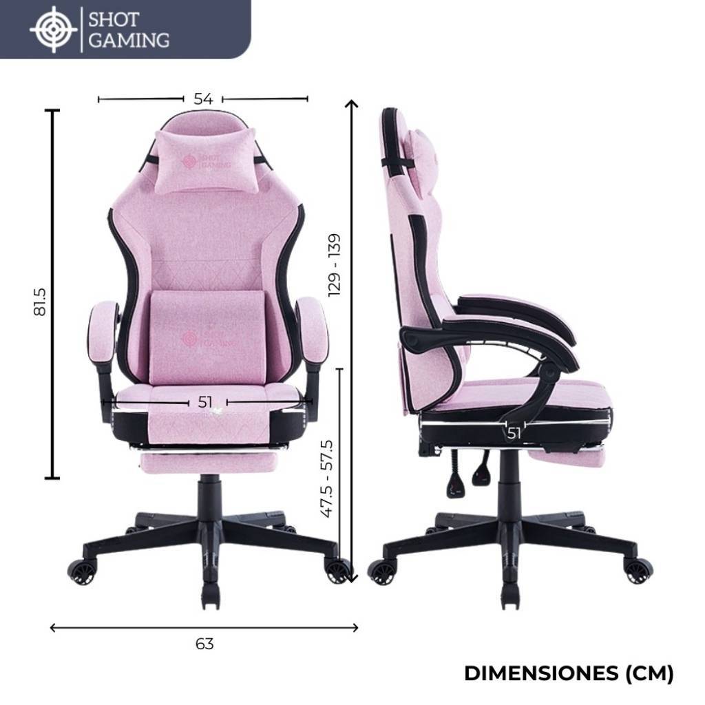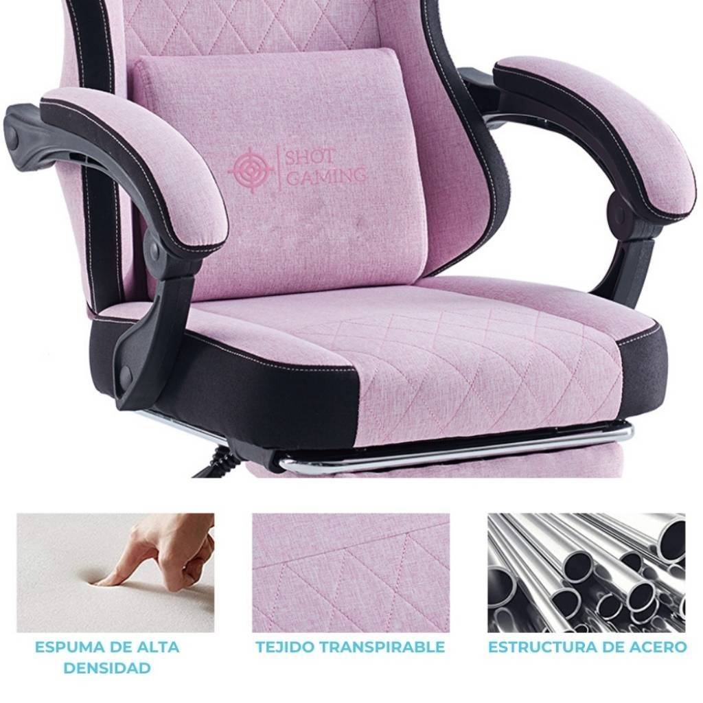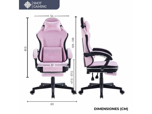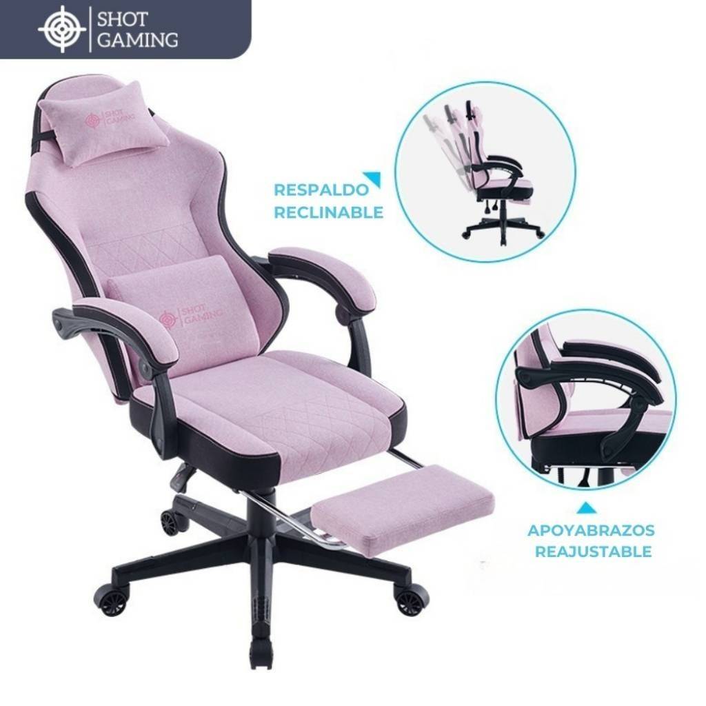 Silla Gamer Shot Gaming PINK Tela Felpa Ergonómica C/Masajeador