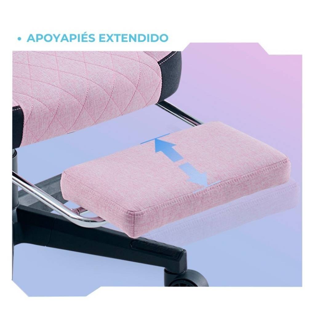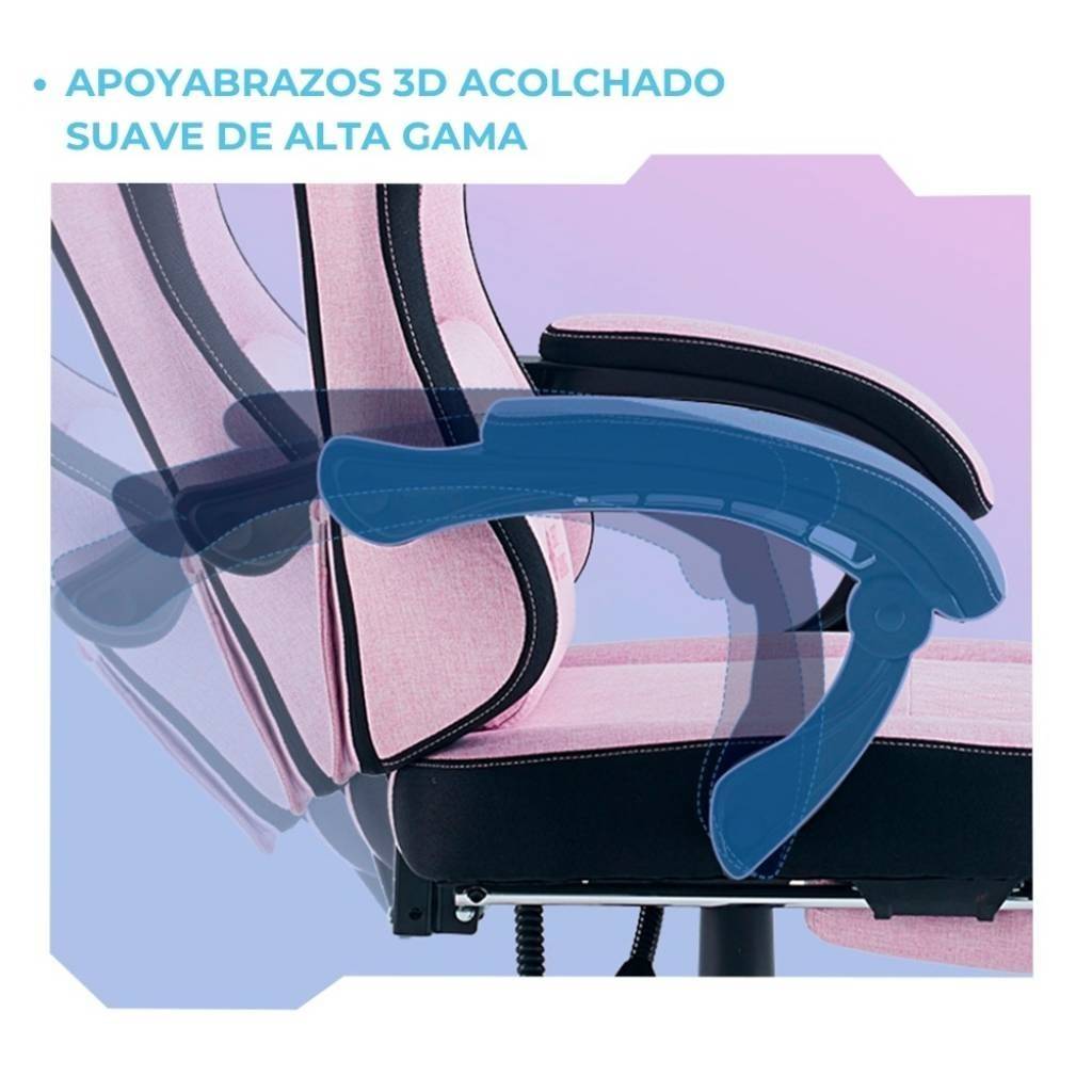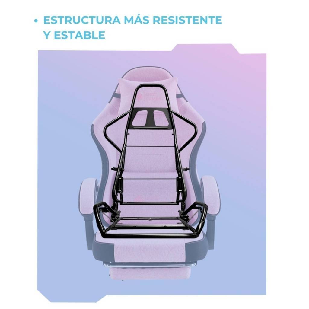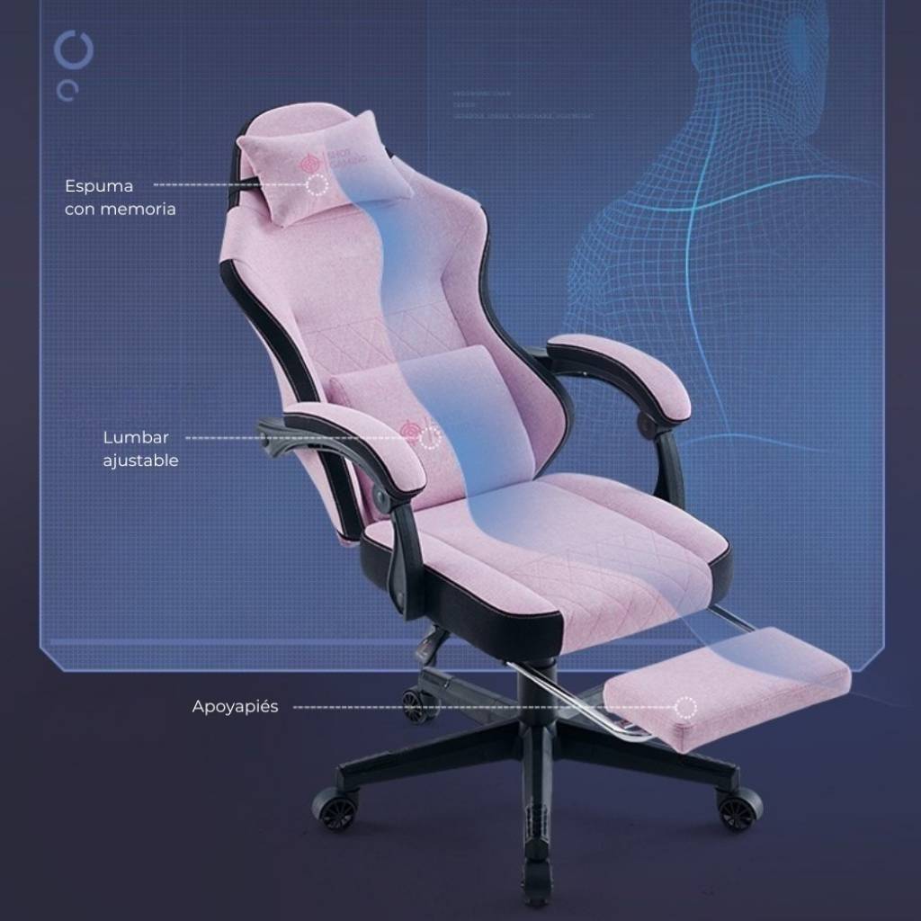 La Shot Gaming SHOT-PINK es una silla gamer pensada para quienes buscan comodidad, estilo y un diseño diferente. Su tapizado en tela tipo felpa con acabado suave tipo gamuza ofrece una experiencia más cálida y confortable, ideal para largas sesiones. Cuenta con estructura de acero, respaldo reclinable, apoyapiés retráctil y masajeador lumbar, logrando una combinación perfecta entre ergonomía y estética.
