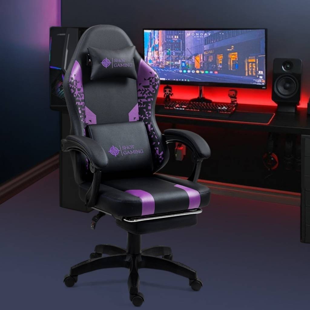 La Shot Gaming SHADOW es una silla gamer diseñada para ofrecer comodidad, ergonomía y resistencia en largas sesiones de juego o trabajo. Su estructura metálica reforzada, combinada con espuma de alta densidad y recubrimiento en cuero PU transpirable, garantiza durabilidad y confort. Incorpora respaldo reclinable, apoyapiés retráctil y almohada lumbar con función de masaje, brindando una experiencia superior tanto para gaming como para uso diario.