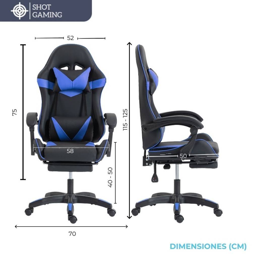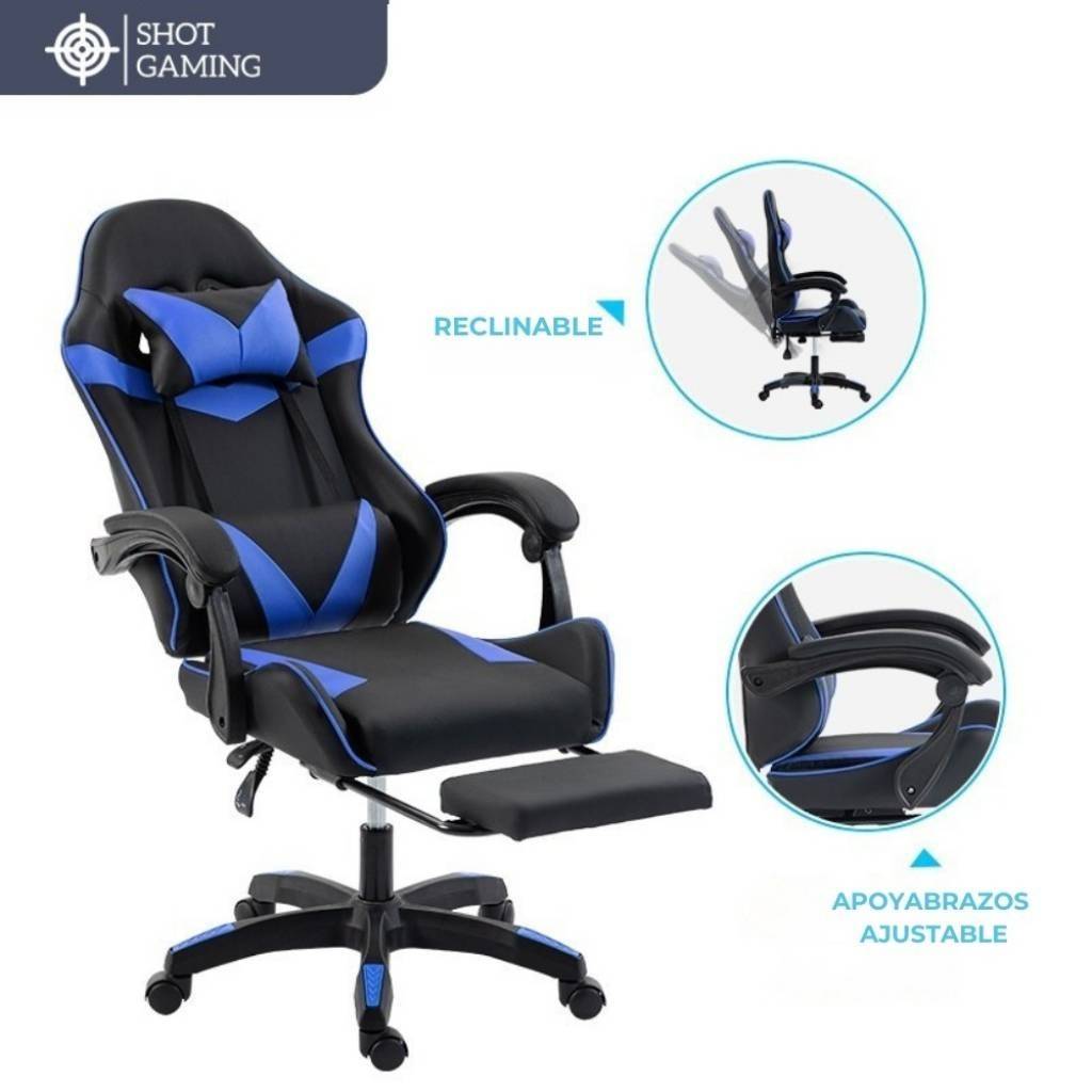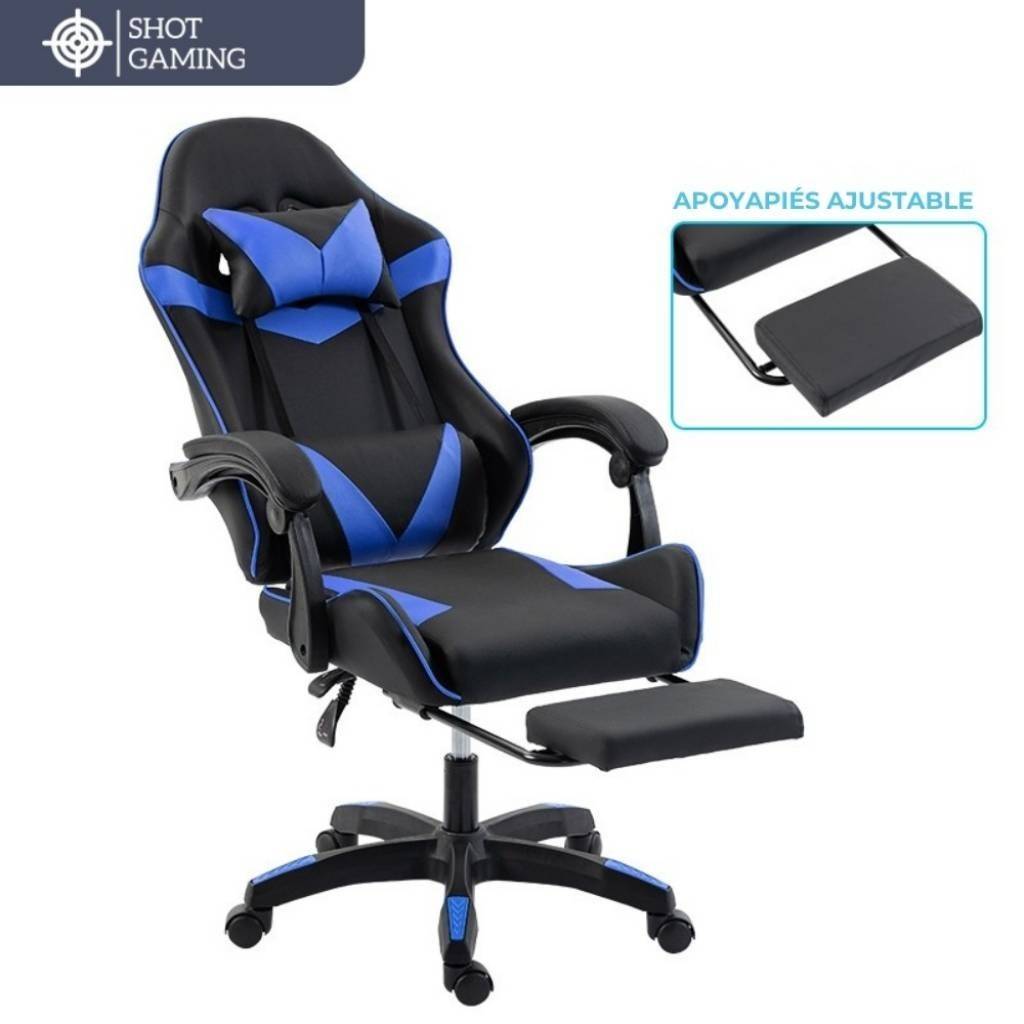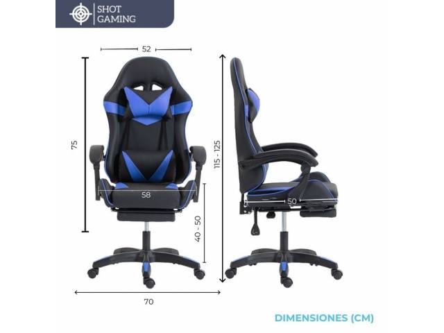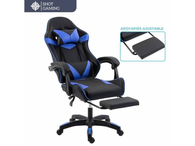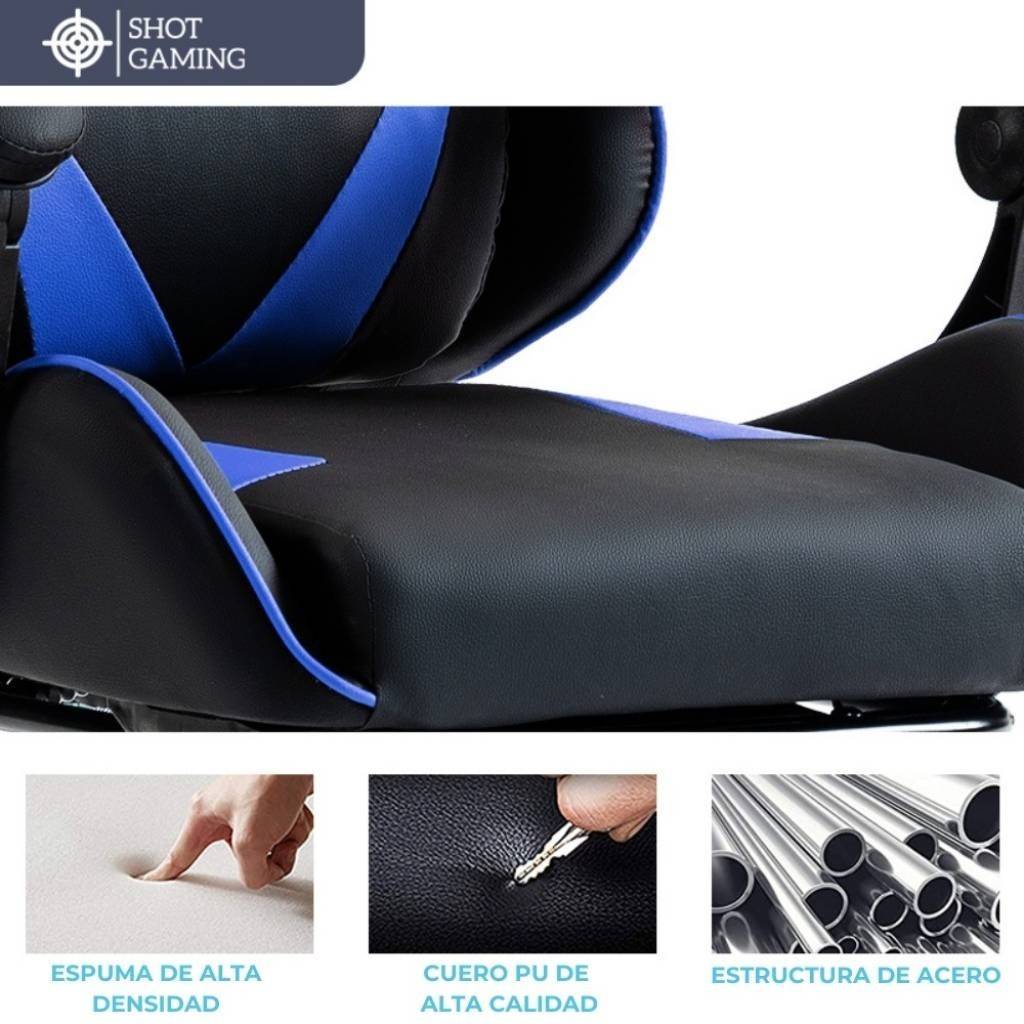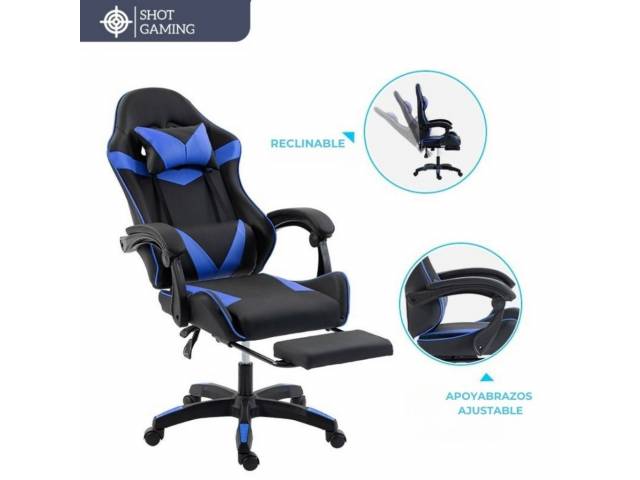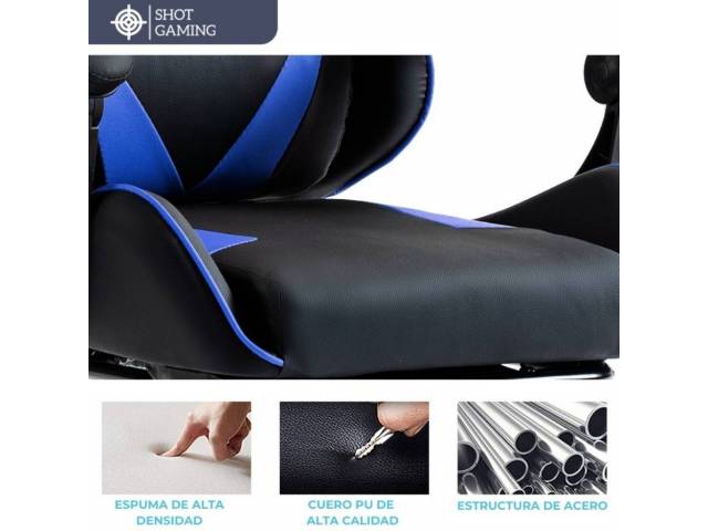 Silla gamer Shot Gaming SHOT-2025 diseñada para ofrecer máximo confort y rendimiento tanto en largas sesiones de juego como de trabajo. Su estructura robusta, materiales resistentes y diseño ergonómico garantizan una experiencia cómoda, estable y duradera, incorporando además apoyapiés retráctil y masajeador lumbar para un nivel superior de comodidad.