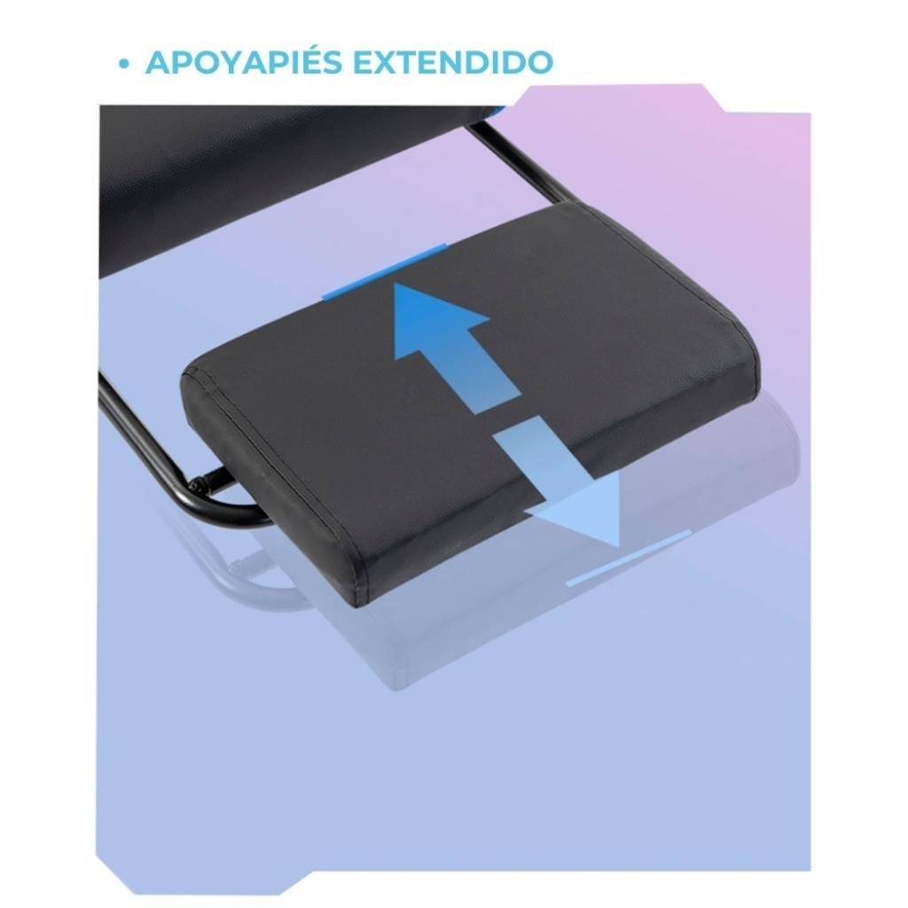 5 ruedas giratorias. Apoyabrazos y apoyapiés. Función de masajeador.