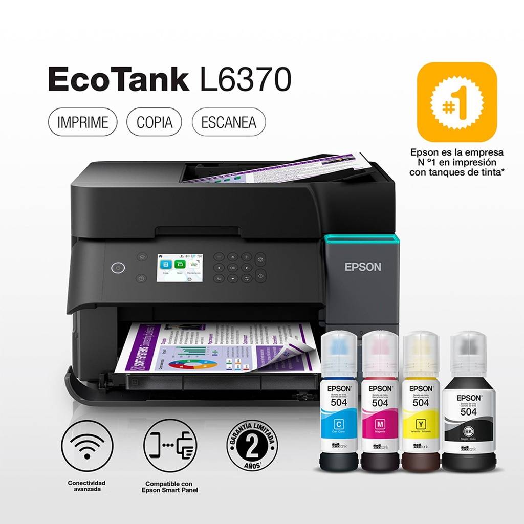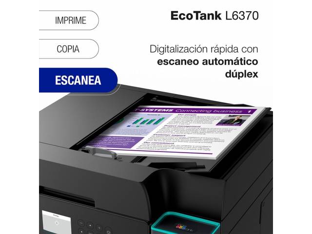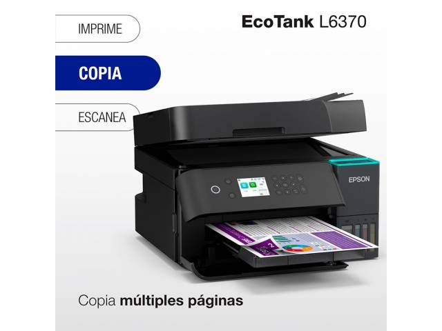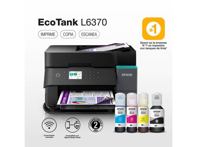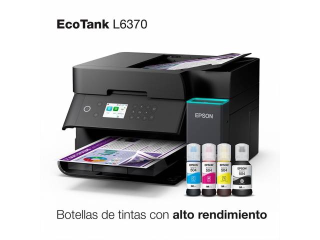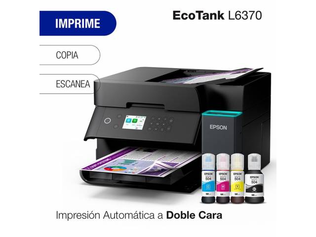 El Epson EcoTank L6370 es una impresora multifunción diseñada para entornos de trabajo exigentes que buscan rendimiento, bajo costo operativo y conectividad avanzada. Con tecnología PrecisionCore y sistema de tinta recargable, ofrece impresiones nítidas y económicas, además de funciones completas de copia, escaneo y duplex automático.