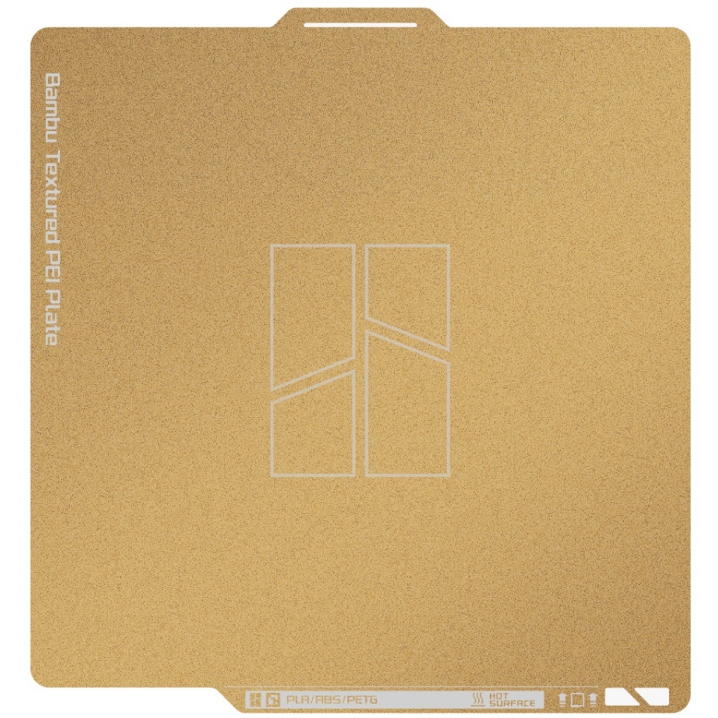 La cama PEI con textura dorada para impresoras Bambu Lab está diseñada para ofrecer una adhesión óptima desde la primera capa y una remoción de piezas rápida y sin esfuerzo. Su superficie texturada no solo mejora la fijación durante la impresión, sino que también aporta una terminación estética uniforme en la base de los modelos. Fabricada para un uso intensivo, es una solución duradera y confiable, especialmente optimizada para PLA, aunque compatible con otros filamentos comunes.