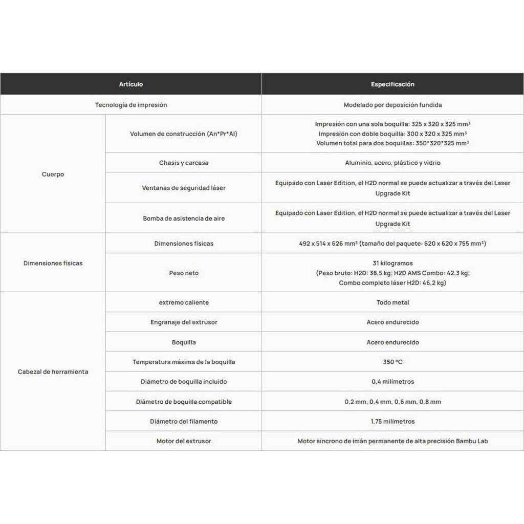 Impresora 3D Bambu Lab H2D con AMS 2 PRO diseñada como una plataforma de fabricación todo en uno, orientada a usuarios profesionales y entornos exigentes. Integra impresión 3D avanzada con sistema de extrusión doble, compatibilidad con módulos láser y funciones de corte y trazado, junto a un completo sistema de monitoreo, filtrado de aire y automatización que eleva la productividad y la calidad de los resultados.