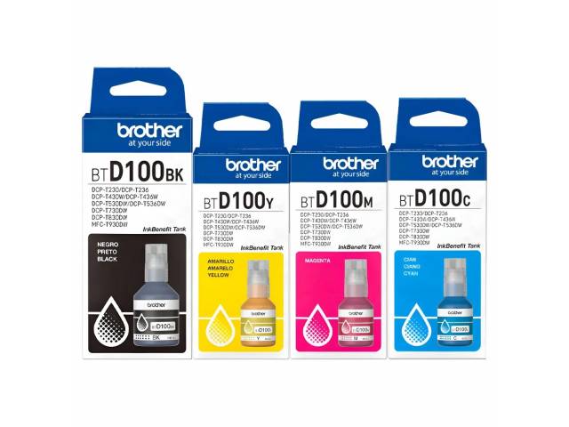 El pack de 4 tintas Brother D100 está diseñado para ofrecer impresiones nítidas, duraderas y con colores intensos. Ideal para equipos Brother de la serie InkBenefit Tank, garantiza un rendimiento constante y confiable tanto en documentos como en imágenes, reduciendo costos de impresión sin comprometer la calidad. Incluye los cuatro colores esenciales para un rendimiento completo de impresión.