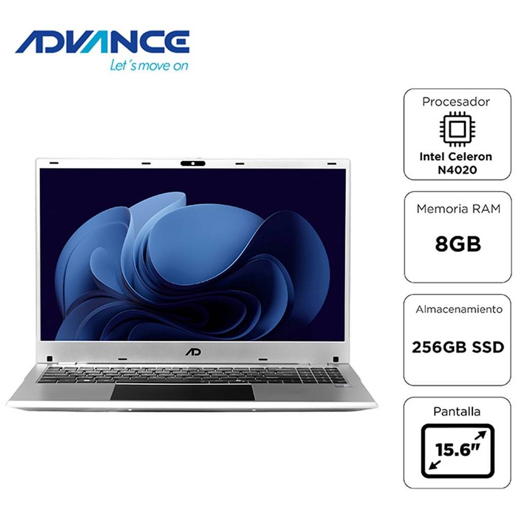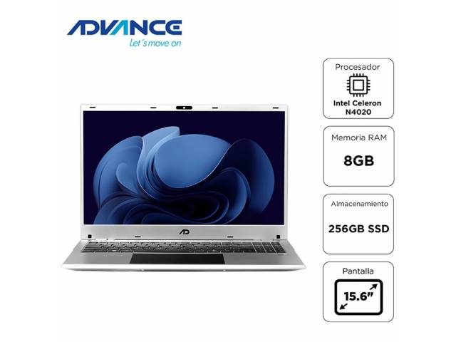 La Advance NV9855 es una notebook de 15.6" diseñada para tareas diarias como navegación web, ofimática, clases virtuales y contenido multimedia. Su pantalla Full HD aporta buena nitidez y comodidad visual, mientras que el procesador Intel Celeron N4020, junto con 8GB de RAM y un SSD de 256GB, permite un funcionamiento ágil para actividades básicas. Es una opción práctica y accesible para estudiantes y usuarios que buscan un equipo funcional para uso cotidiano.