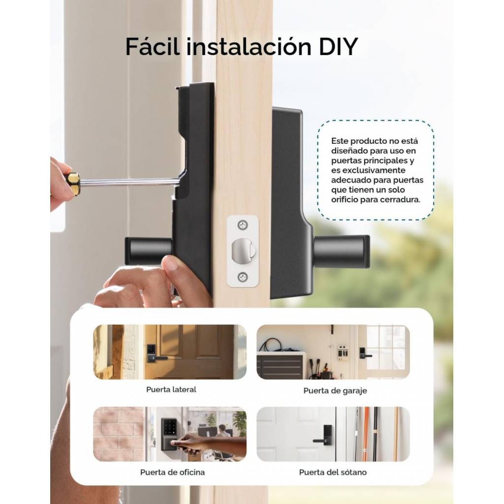 La Eufy Smart Lock C33 es una cerradura inteligente avanzada que combina reconocimiento de huellas dactilares integrado en el mango con conectividad Wi-Fi directa, ofreciendo un acceso rápido, seguro y sin llaves. Su tecnología biométrica aprende del uso diario para mejorar la precisión con el tiempo, brindando una experiencia fluida para todos los miembros del hogar. Diseñada para una instalación sencilla y compatible con distintos tipos de puertas, es ideal para entradas principales, garajes, oficinas o accesos secundarios.