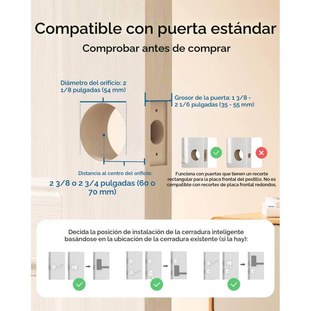 Tipo: Cerradura inteligente con huella y Wi-Fi integrado